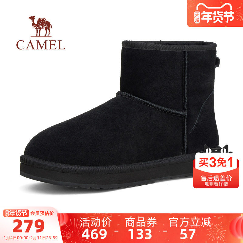 骆驼男鞋冬季新款羊毛加绒加厚东北棉鞋防滑保暖皮毛一体雪地靴男