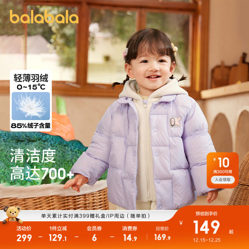 巴拉巴拉童装婴儿羽绒服轻薄儿童宝宝男童女童连帽冬装外套潮上衣