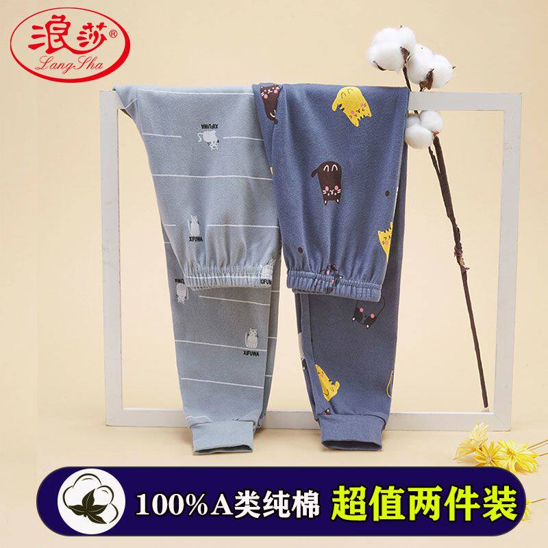 浪莎两条装儿童纯棉秋裤男童内穿保暖裤中大童春秋冬季棉毛裤睡裤