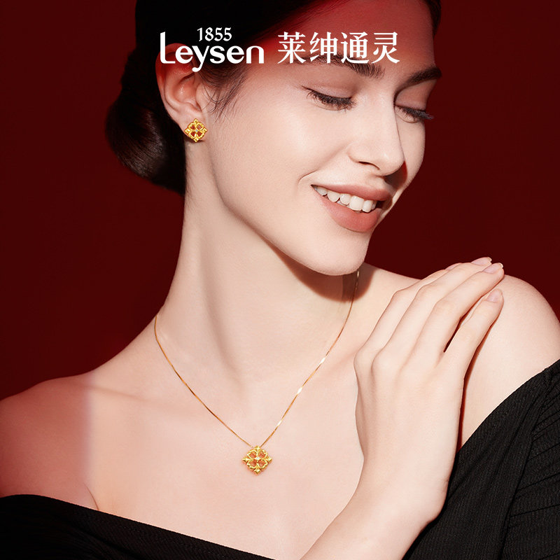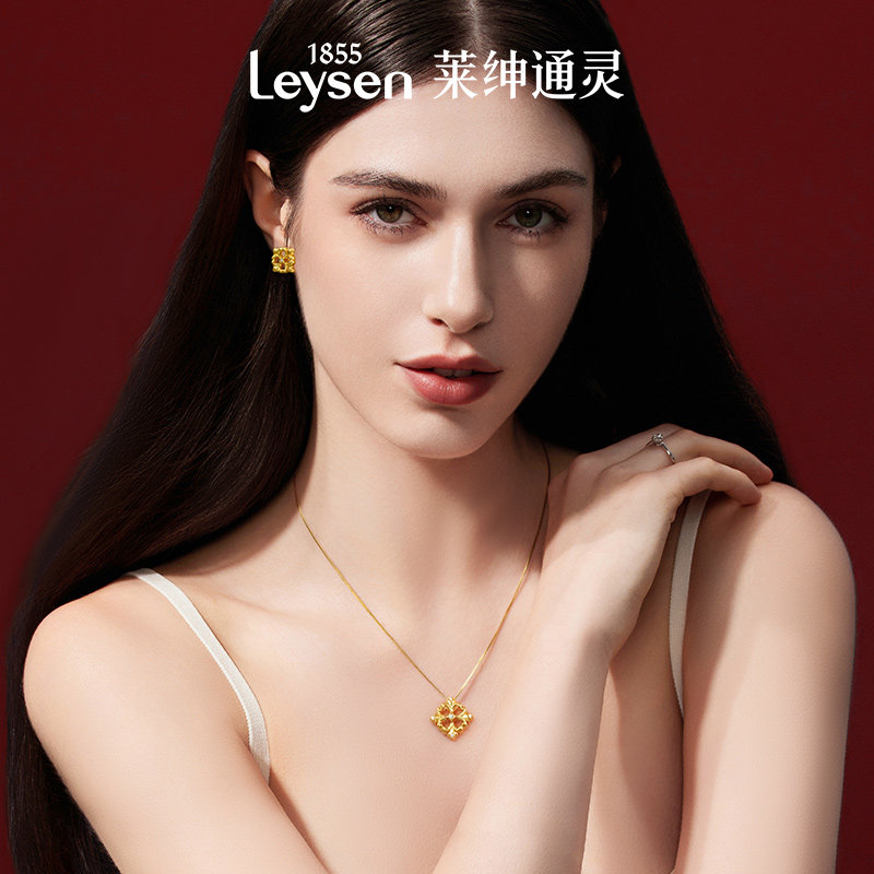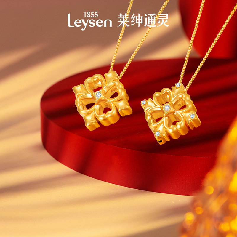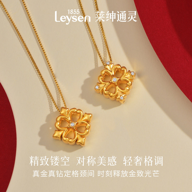 【情人节礼物】莱绅通灵鸢尾花 足金黄金钻石菱形网格吊坠 赠银链