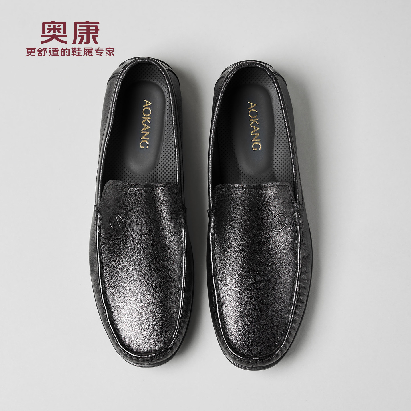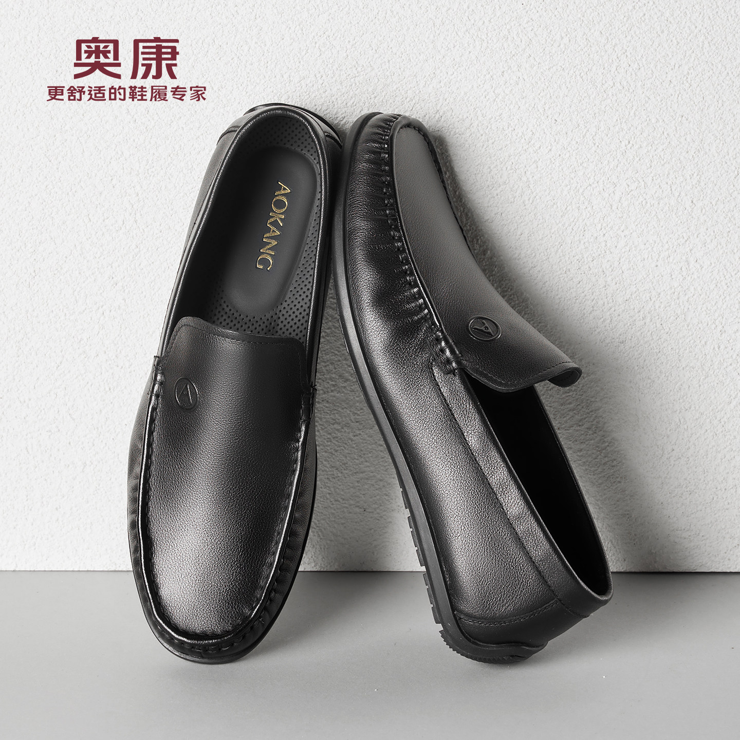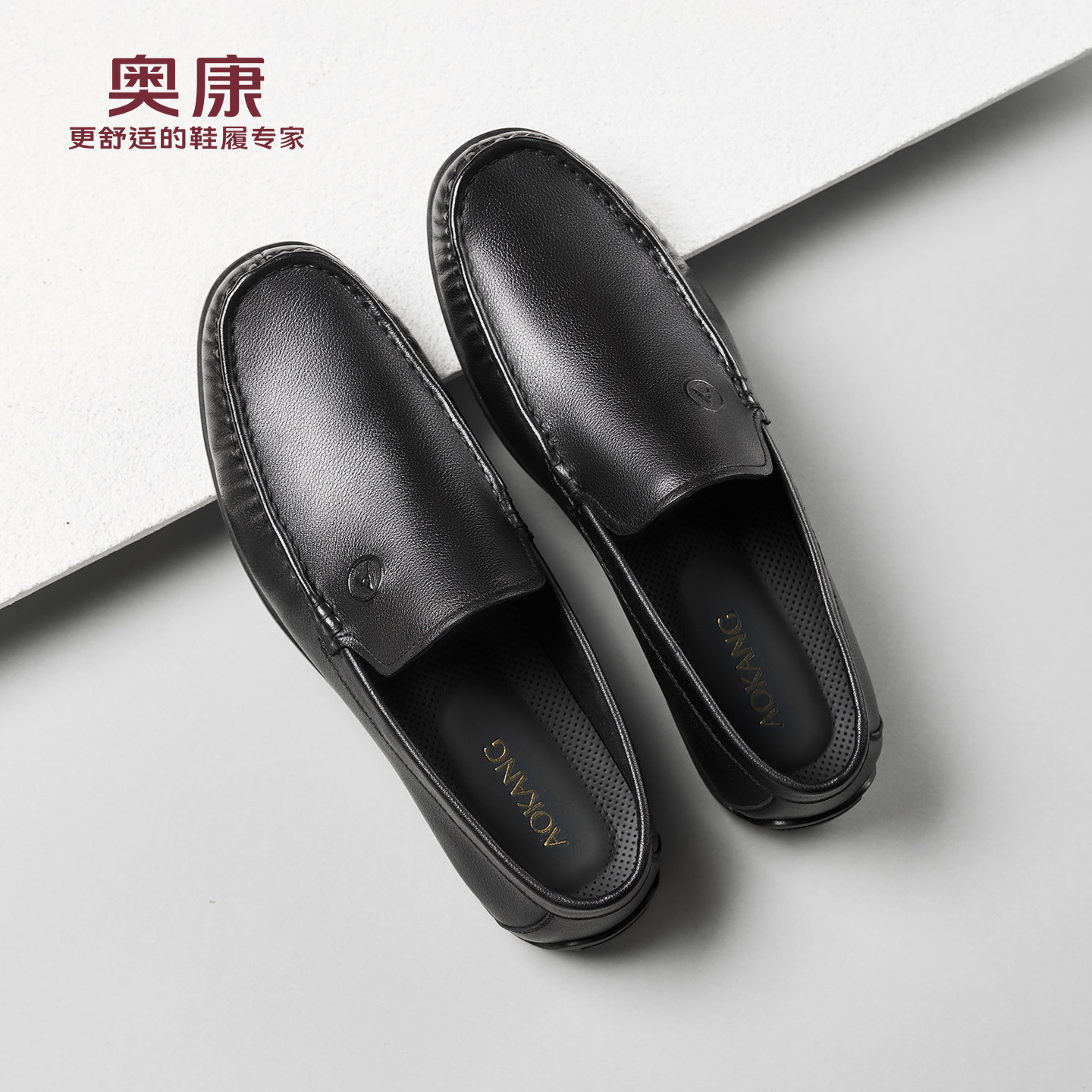 奥康春秋季商务休闲皮鞋男真皮软底乐福鞋舒适一脚蹬套脚爸爸鞋