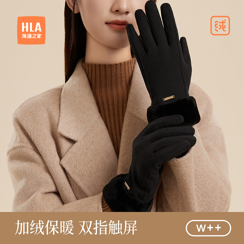 海澜之家布艺手套女士潮流新款秋冬保暖户外骑行加绒触屏防寒防滑