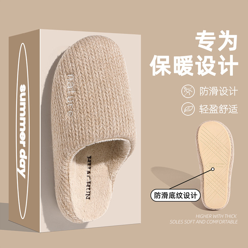 红豆踩屎感棉拖鞋女士秋冬季室内家居2025新款毛绒保暖情侣棉拖男