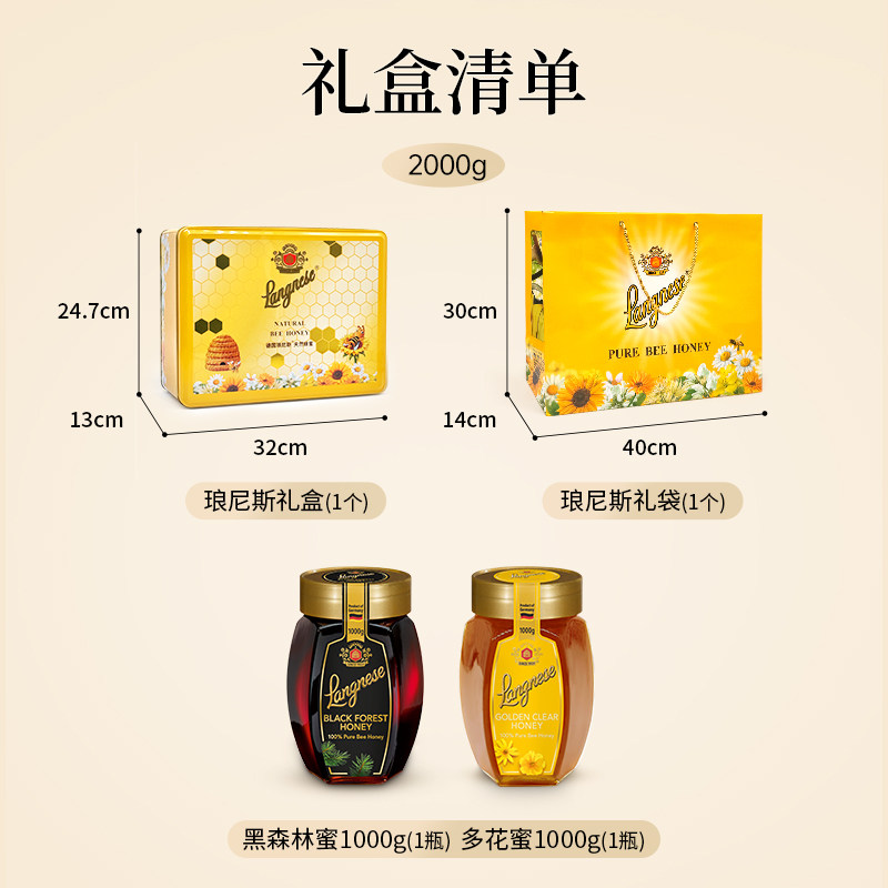 琅尼斯德国进口蜂蜜百花蜂蜜黑蜂蜜非农家自产蜂蜜送人礼盒蜂蜜