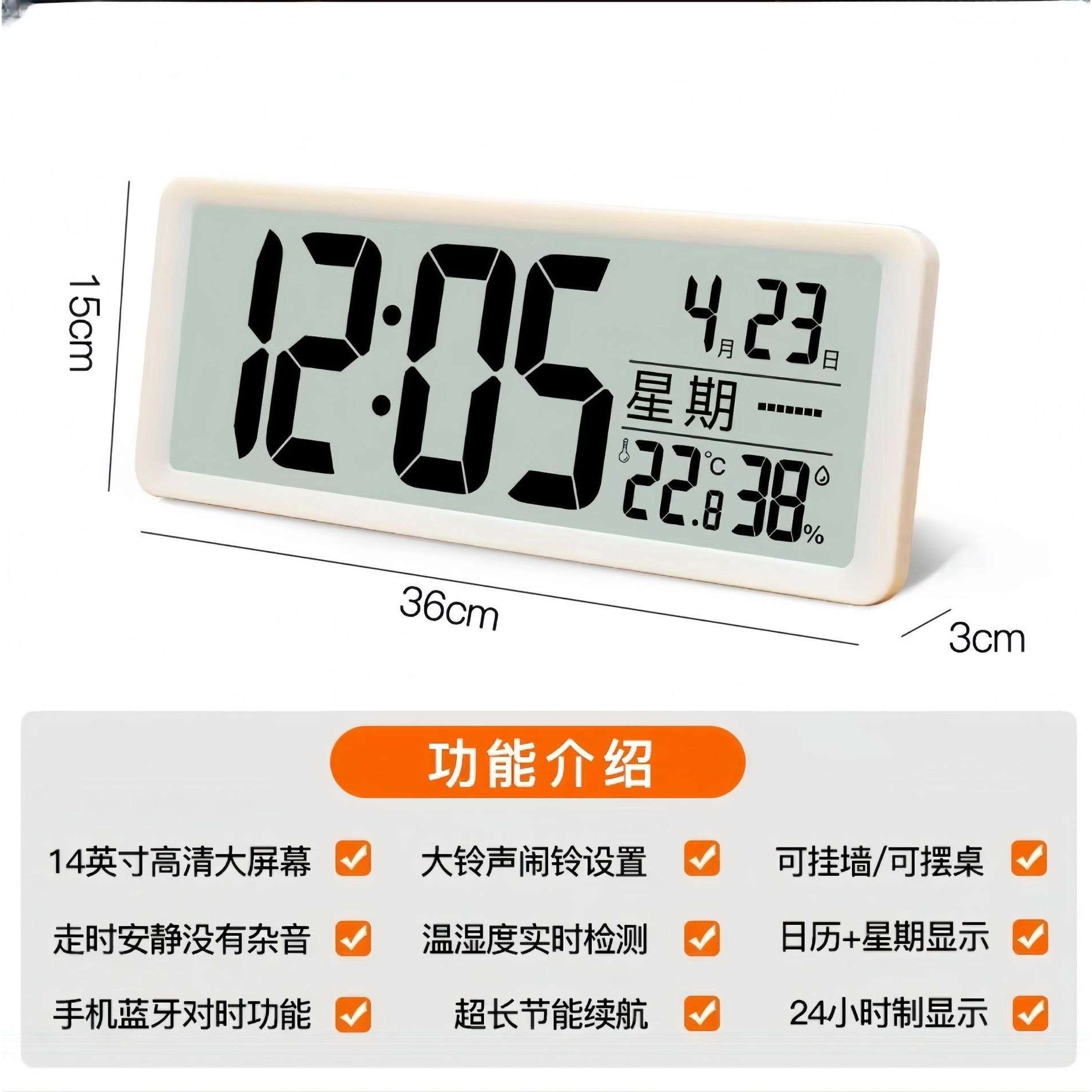 电子钟表电池款座钟家用客厅钟表液晶现代简约万年历挂墙静音时钟
