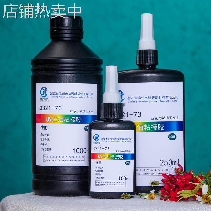 UV注油粘接胶不粘接散粉亚克力胶注油水厂家供应紫外线固化