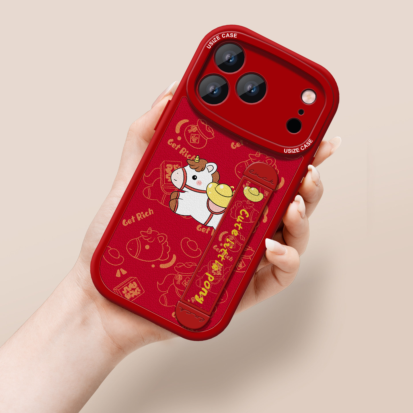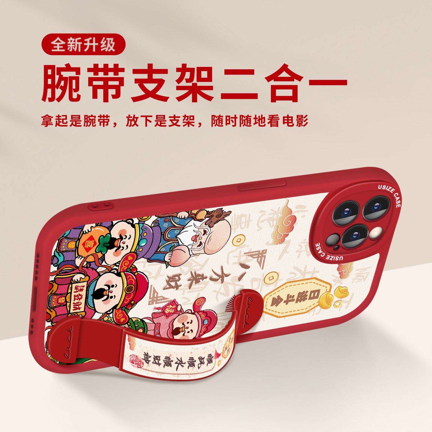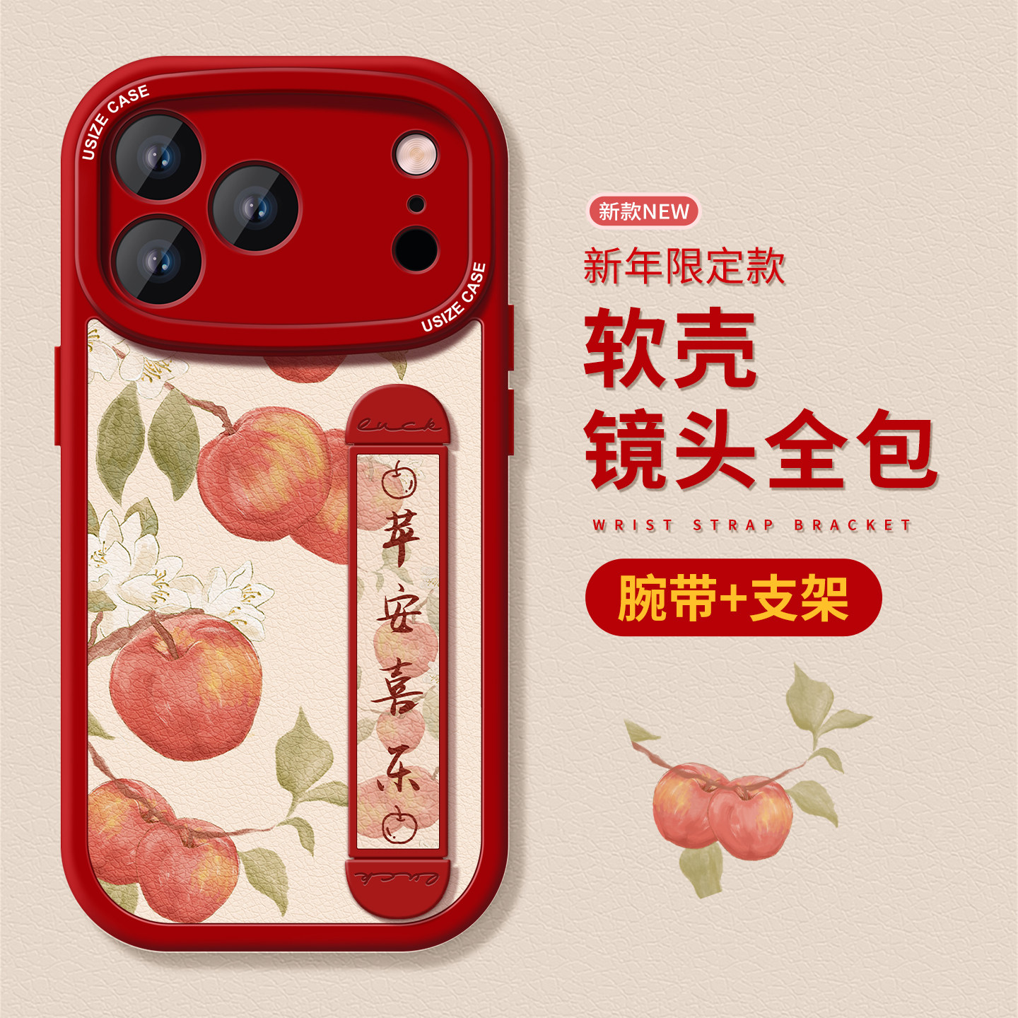 适用苹果17Promax手机壳16新款iphone15防摔伸缩腕带支架14pro全包创意air马年诸事皆顺13pro可调节高级卡通