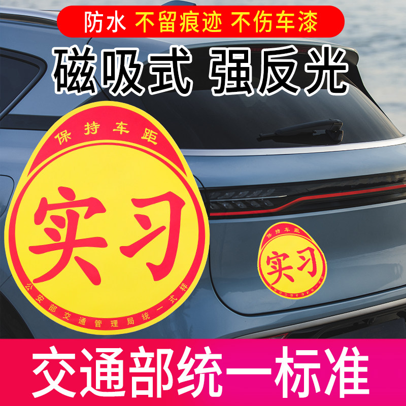 实习车贴新手上路反光磁贴汽车贴纸创意实习期专用磁吸标志女司机