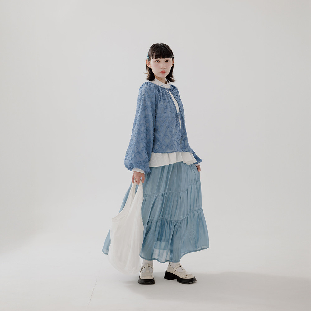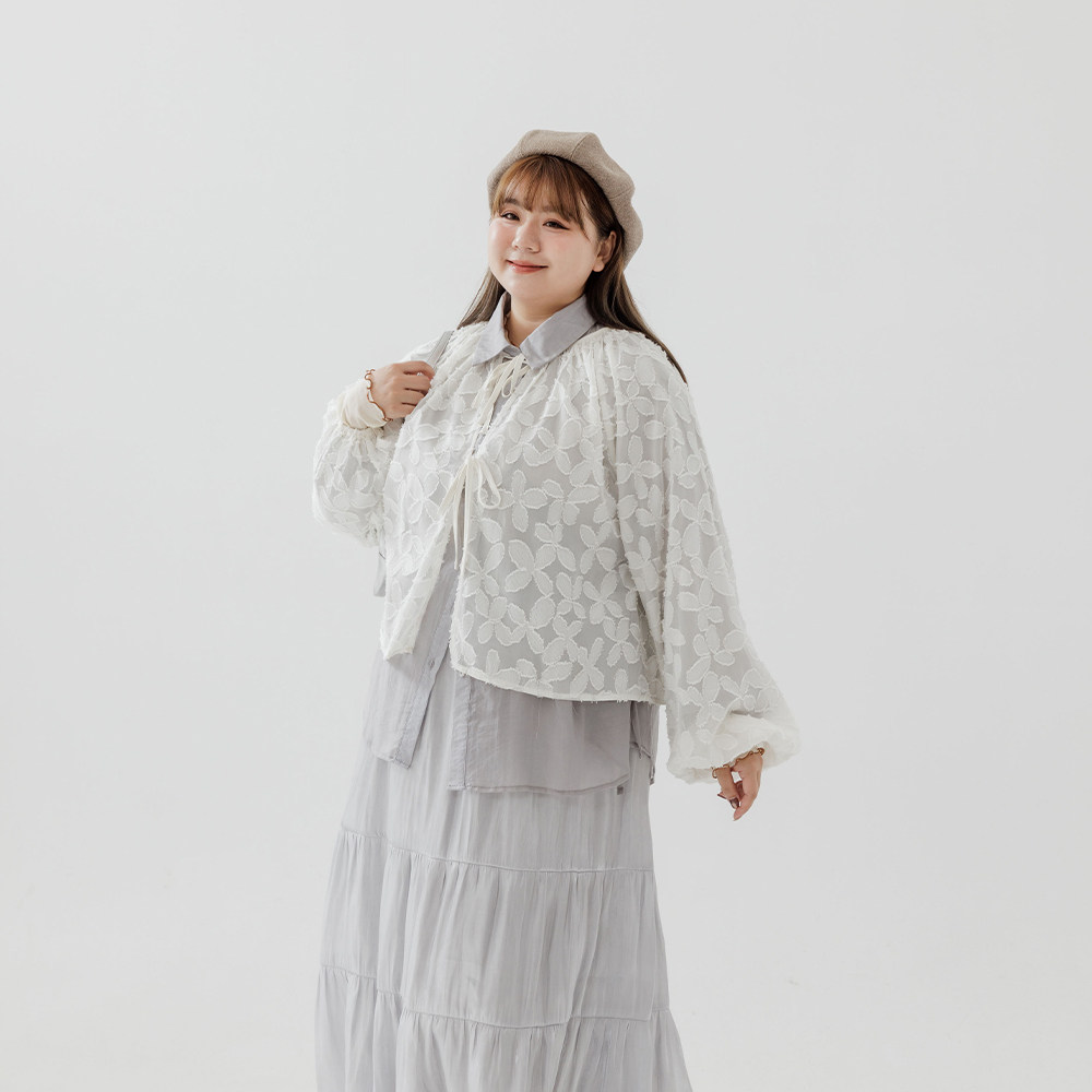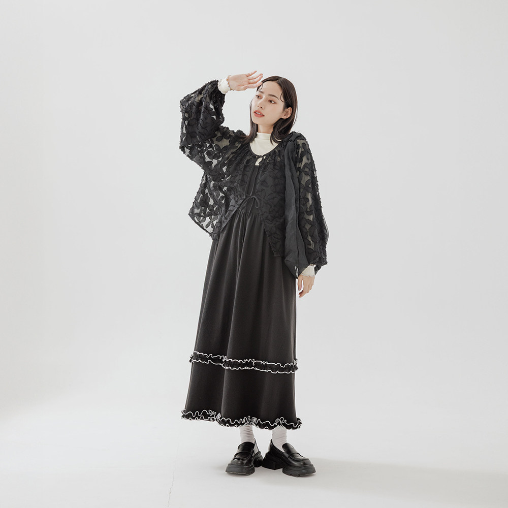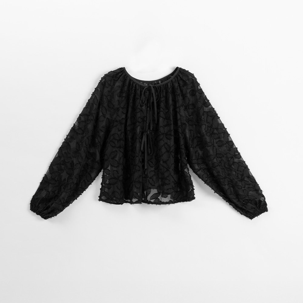QUEENSHOP 2025秋冬新品女装棉花糖缇花澎袖绑带长袖罩衫02071658