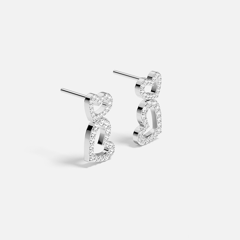 [杨紫同款]APM Monaco爱心耳环银白色密镶耳饰耳钉镂空女圣诞礼物
