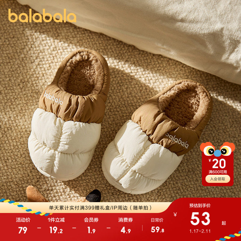 巴拉巴拉儿童棉拖鞋男童女童冬季宝宝室内家居中大童加绒加厚拖鞋