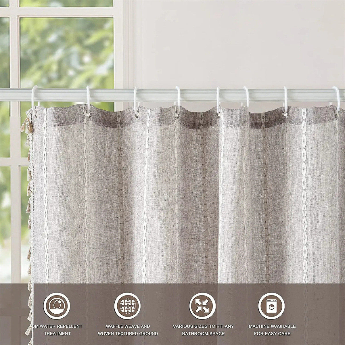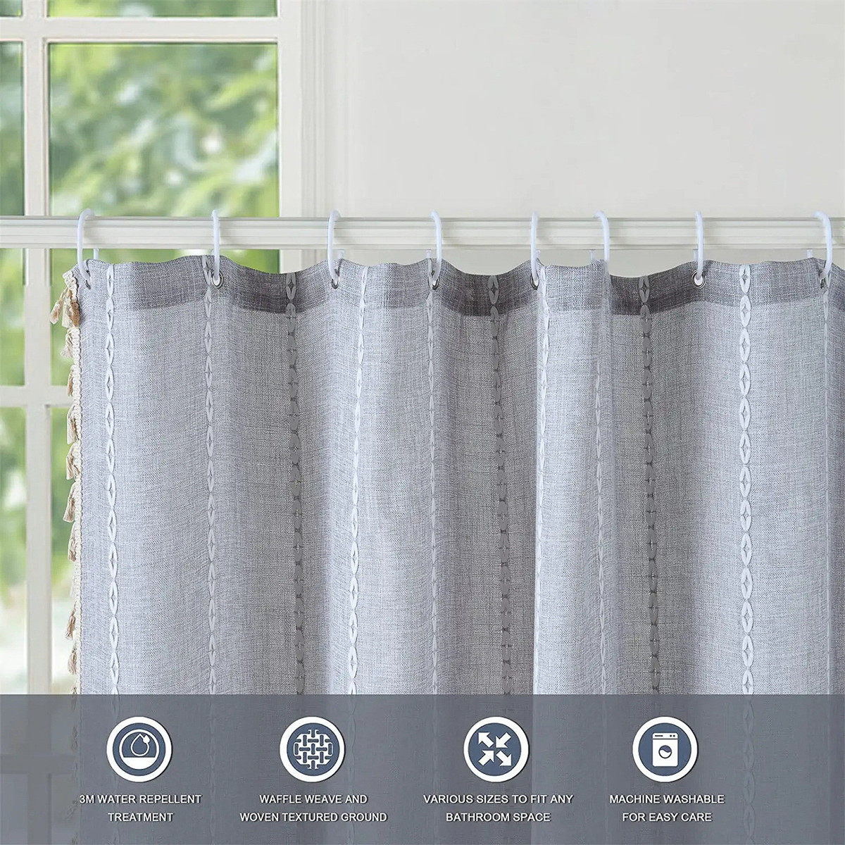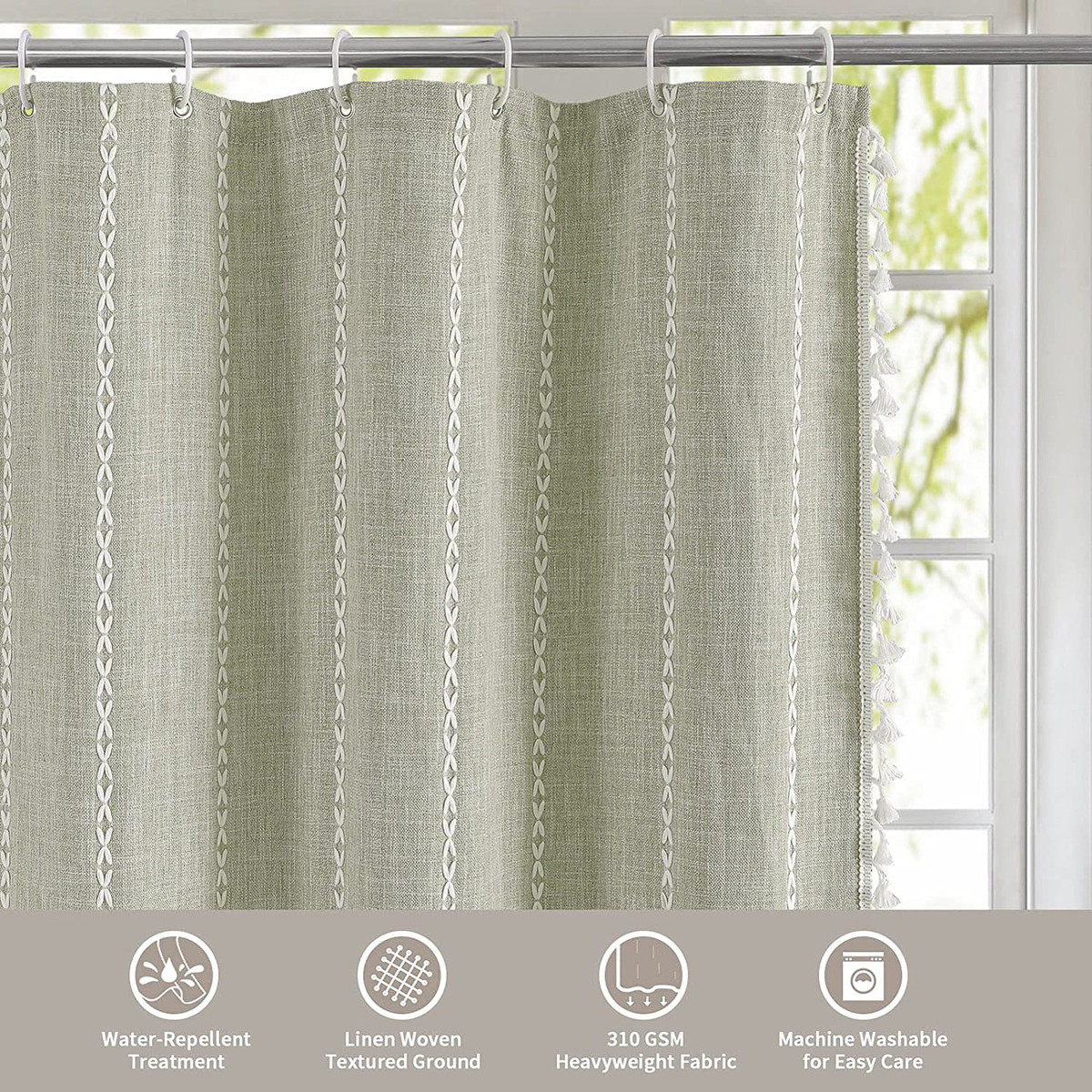 防水浴帘绿色波西米亚流苏乡村风格棉麻农舍重型浴室帘套装