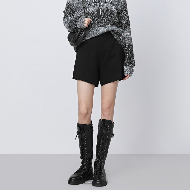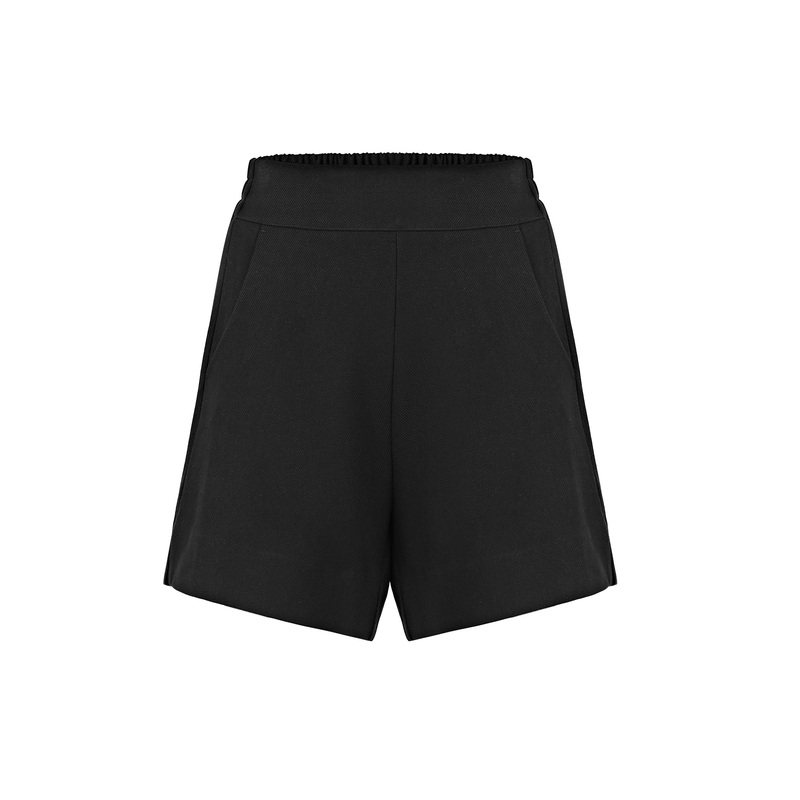 sdeer圣迪奥女装休闲松紧拼接插袋黑色A字短裤S21460906