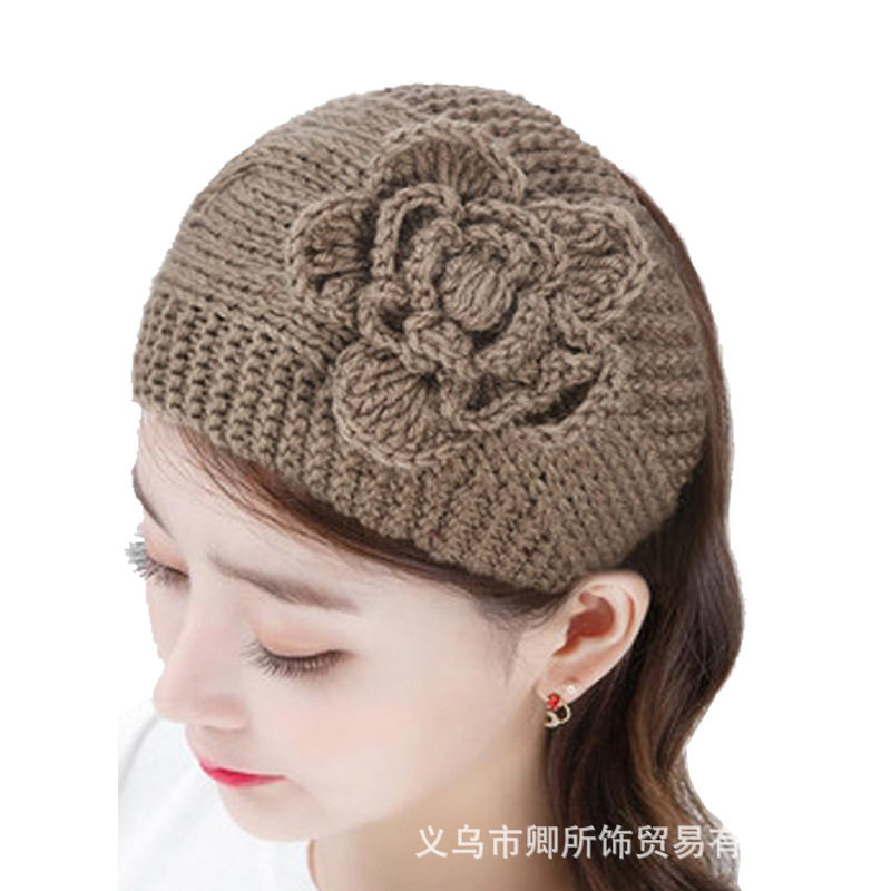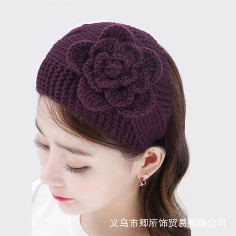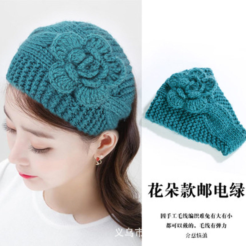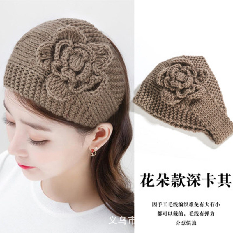 韩版秋冬针织保暖护耳毛线帽超宽花朵洗脸发带发箍发饰头巾头套女