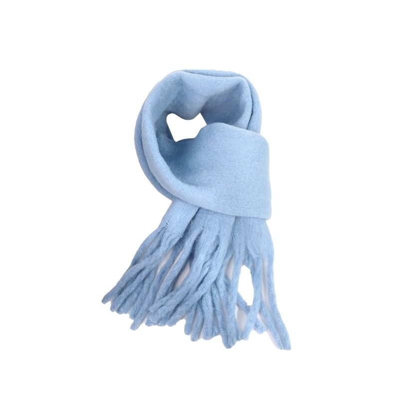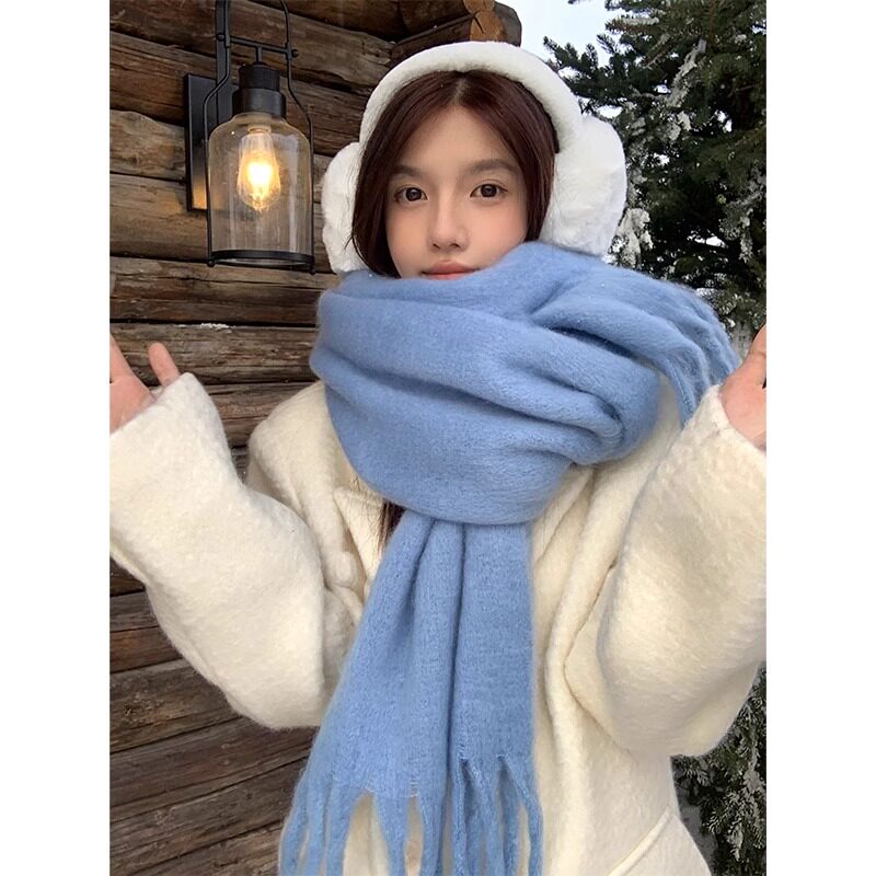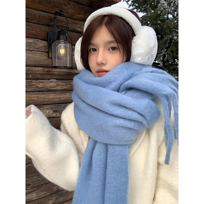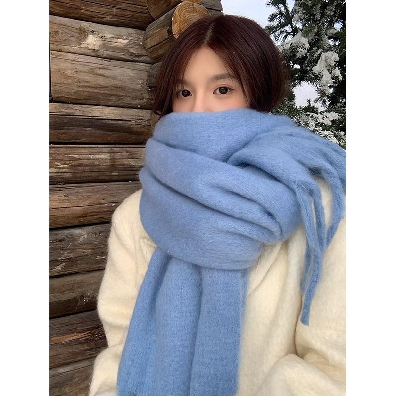 蓝色围巾女冬季感加厚保暖克莱因蓝马海毛围脖披肩白色高级感百搭