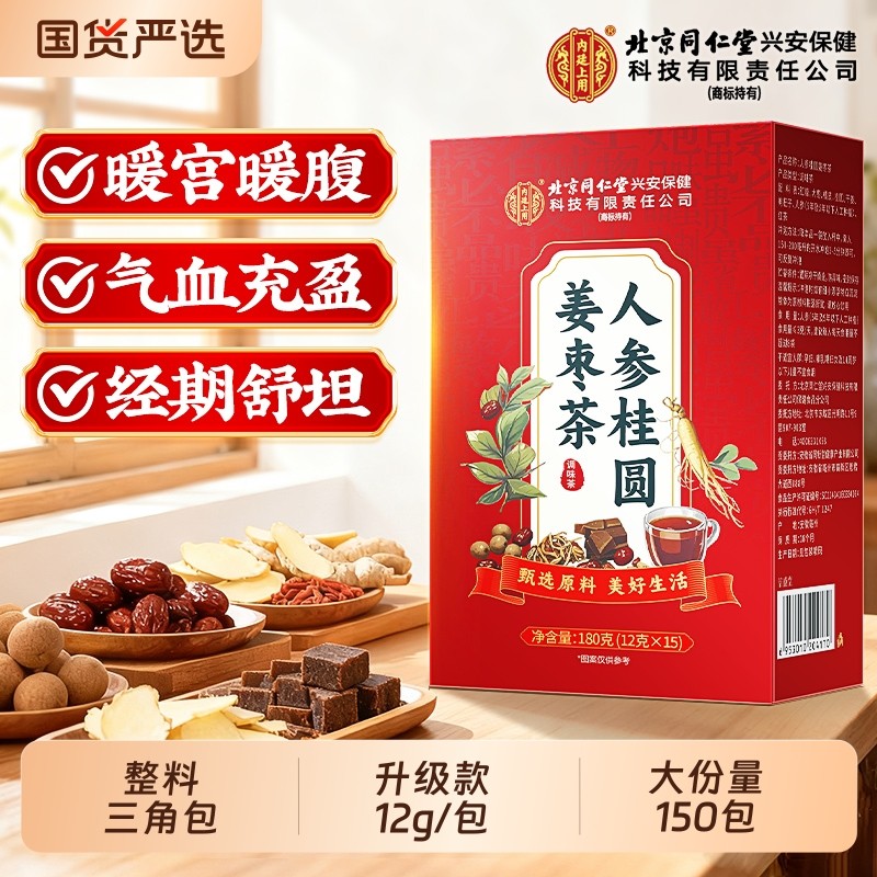 同仁堂红糖姜茶大姨妈宫寒调理痛经官方旗舰店正品姜枣养生茶桂圆