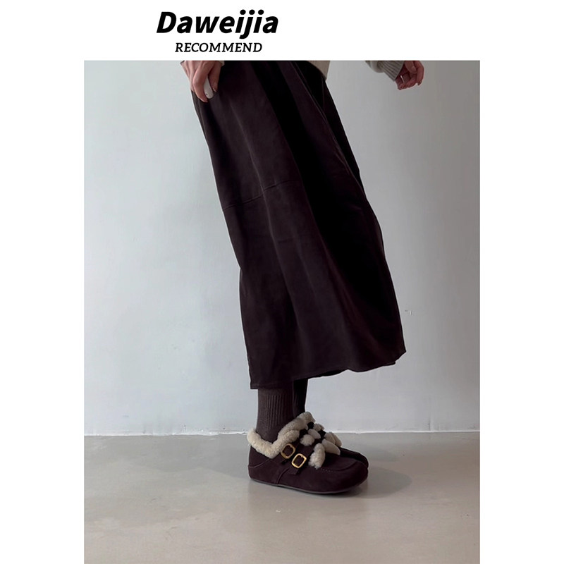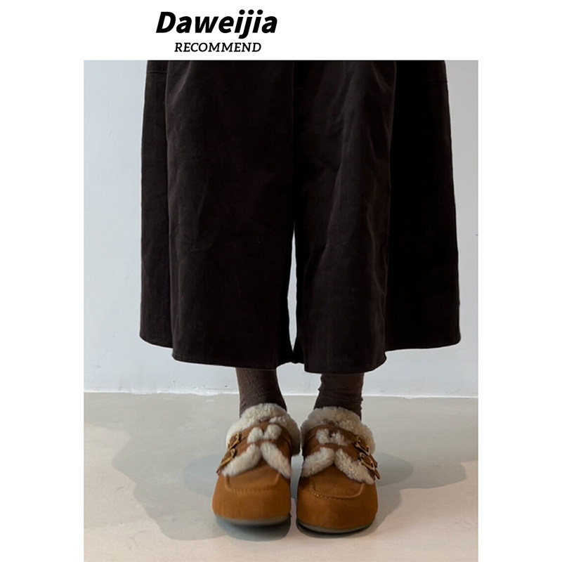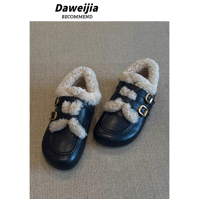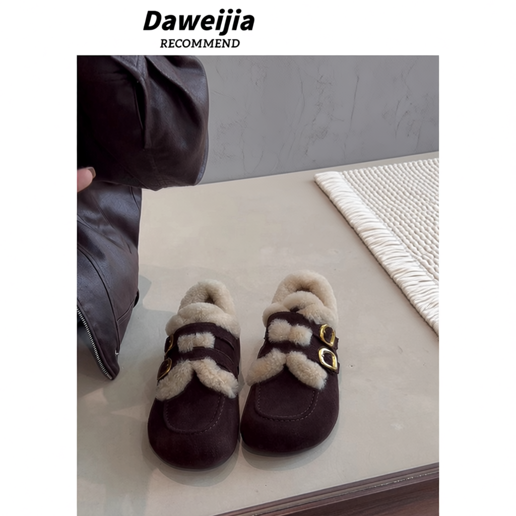 TATAFOCUS~加绒毛毛鞋韩版圆头皮带扣2025冬季新款勃肯鞋女35-28