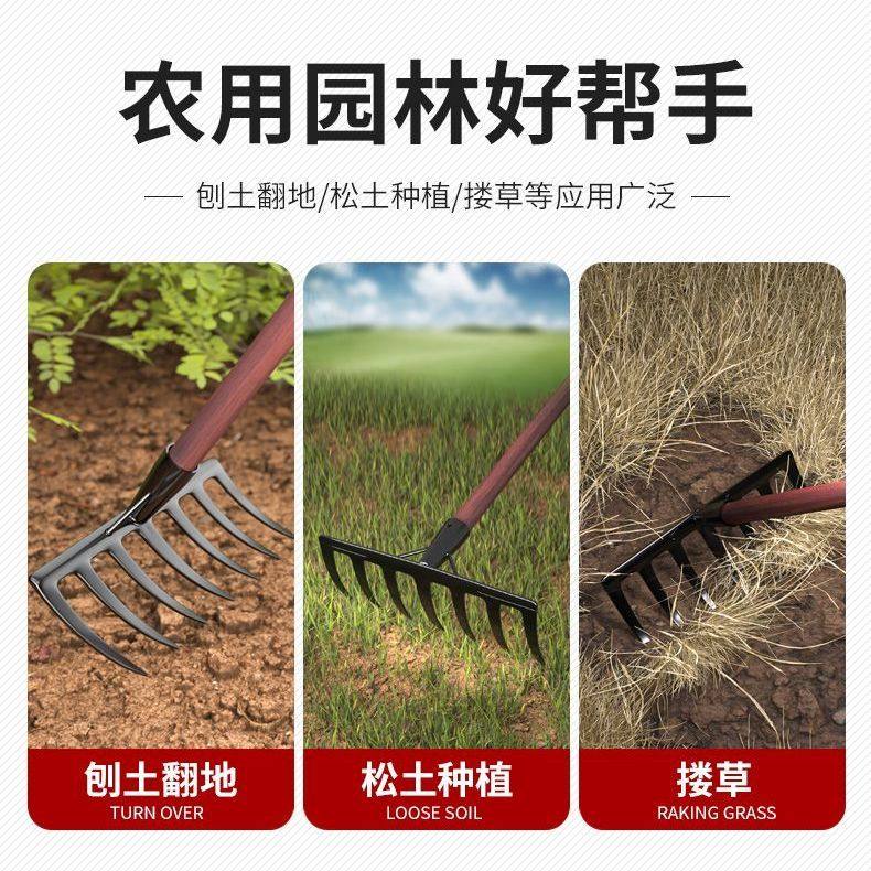 耙子九齿钉耙农具农用工具翻土松土草多齿除草多齿扒子平地加厚耙