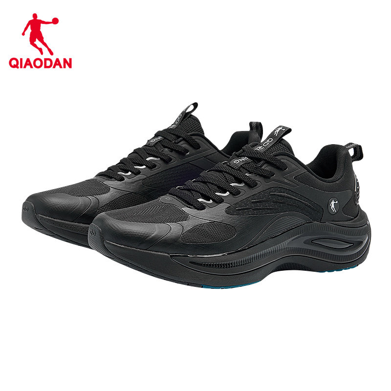 乔丹皮面加绒防水冬季运动鞋男鞋跑步鞋轻便软底减震休闲黑色跑鞋