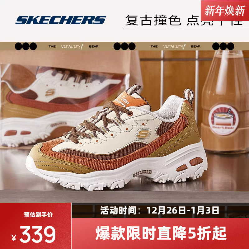斯凯奇奶茶熊黑糖烤奶新款情侣老爹鞋子男女同款复古运动鞋时尚