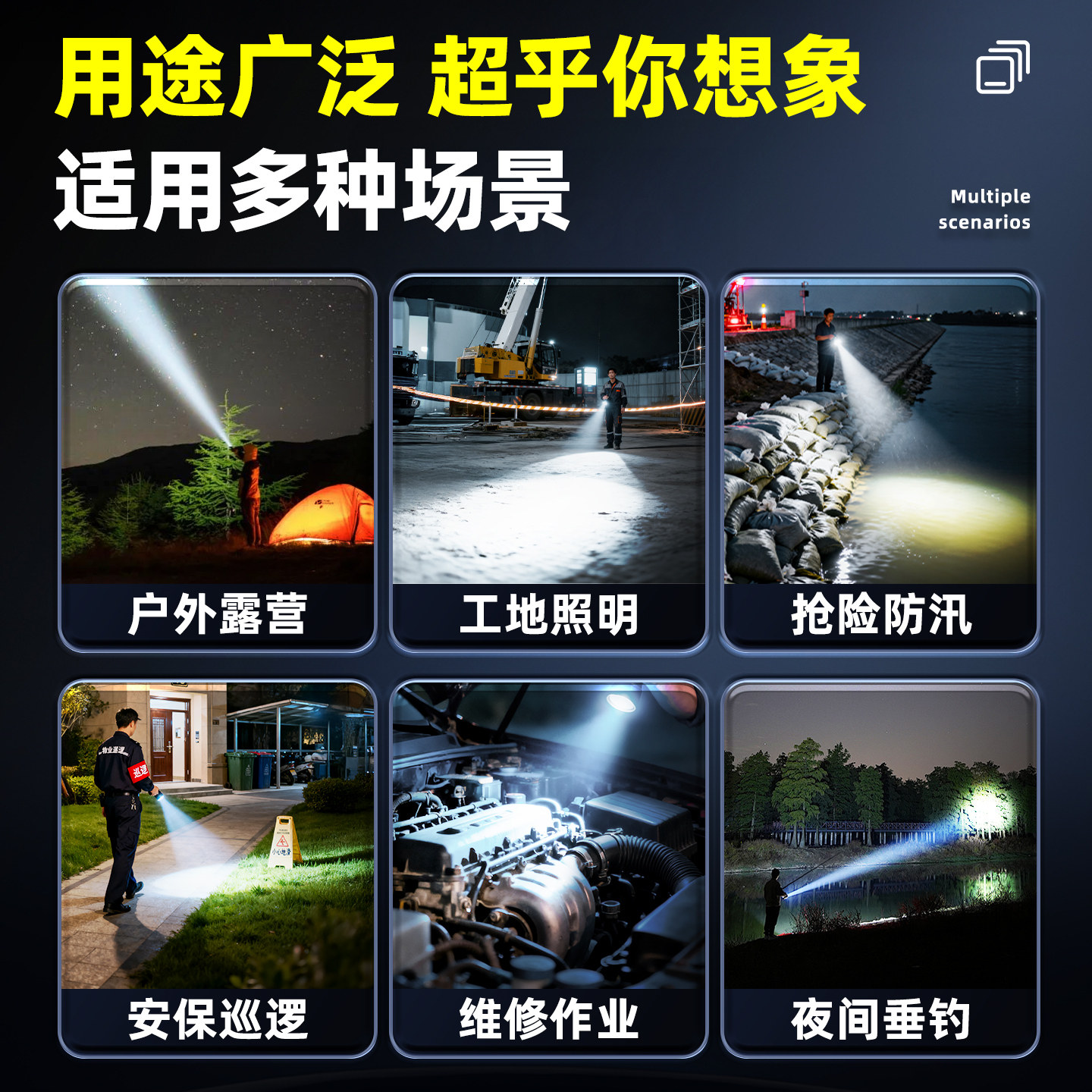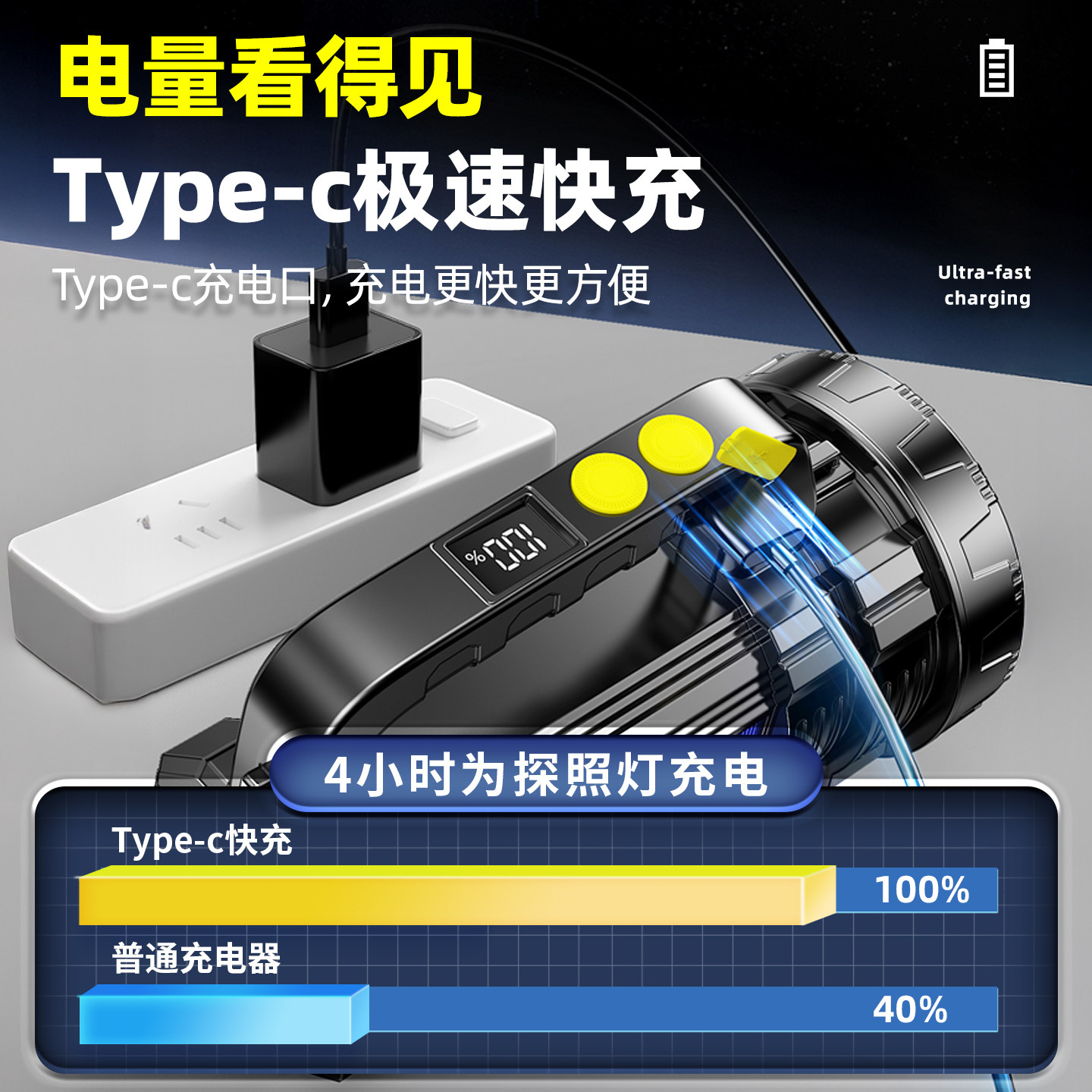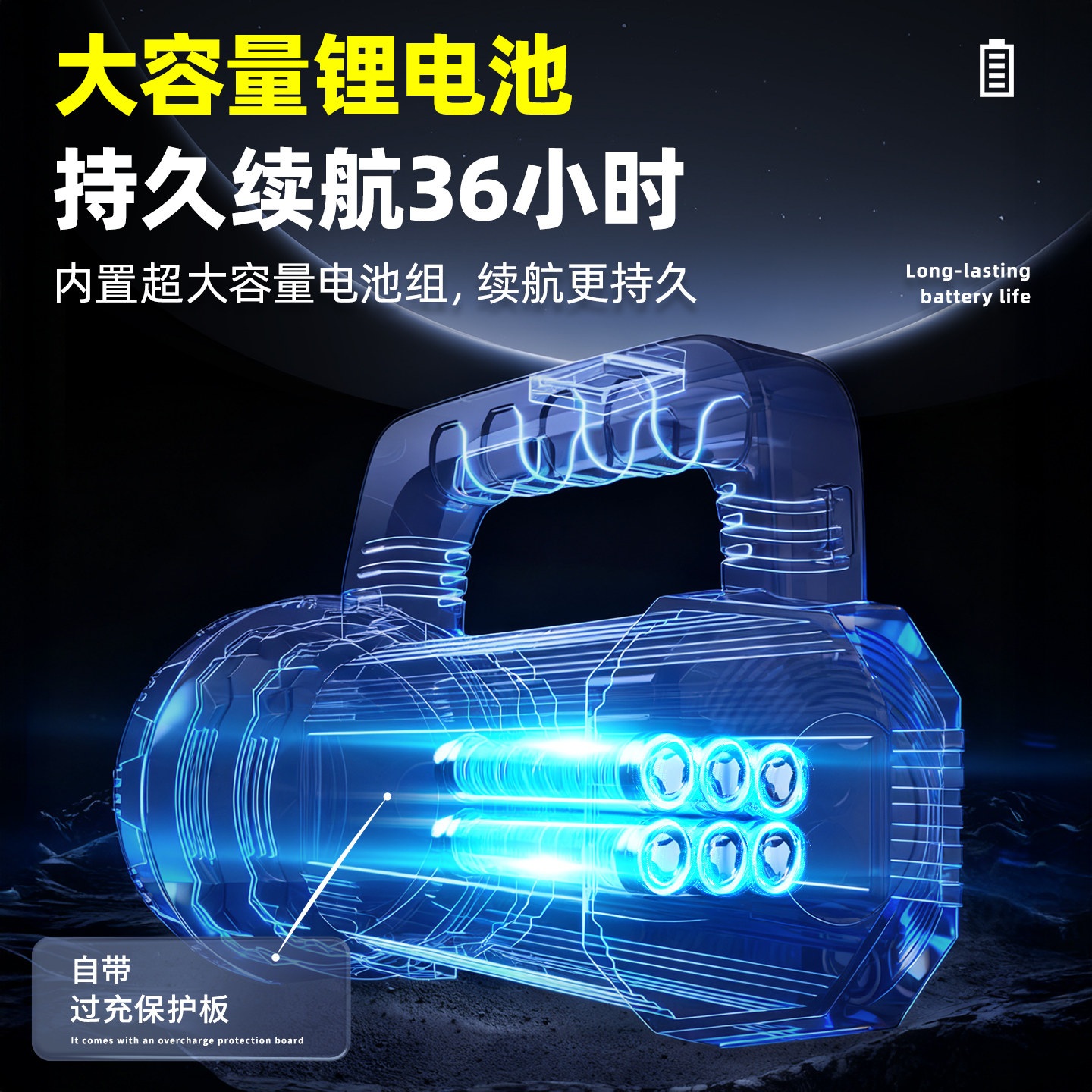 手电筒2025新款强光充电超亮家用手提探照灯太阳能户外led照明灯