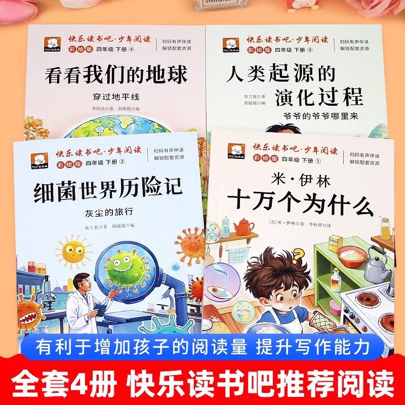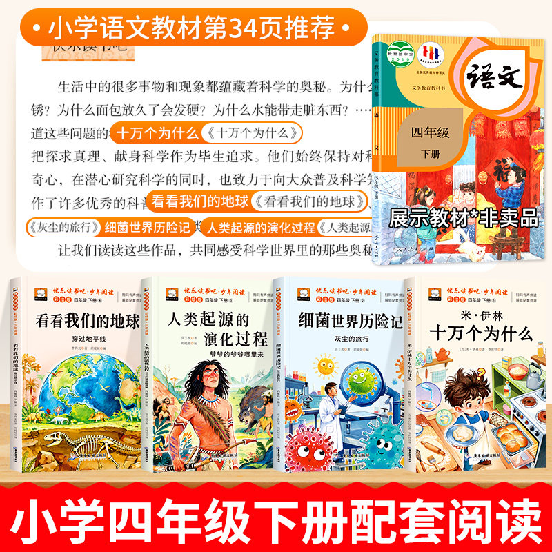 2025快乐读书吧四年级下册必读课外书十万个为什么看看我们的地球人类的起源细菌世界历险记小学生书目老师推荐阅读书籍灰尘旅行