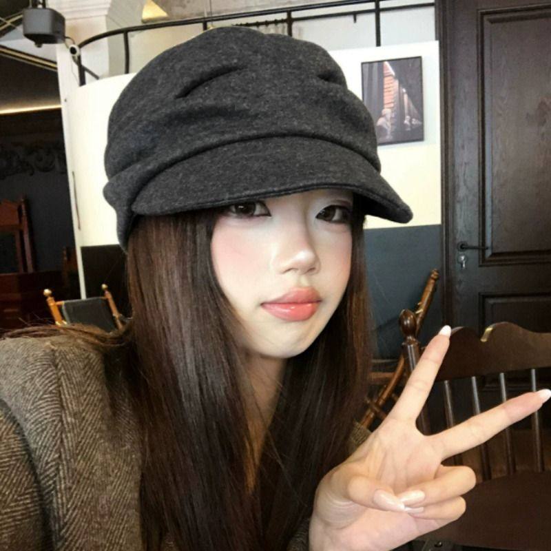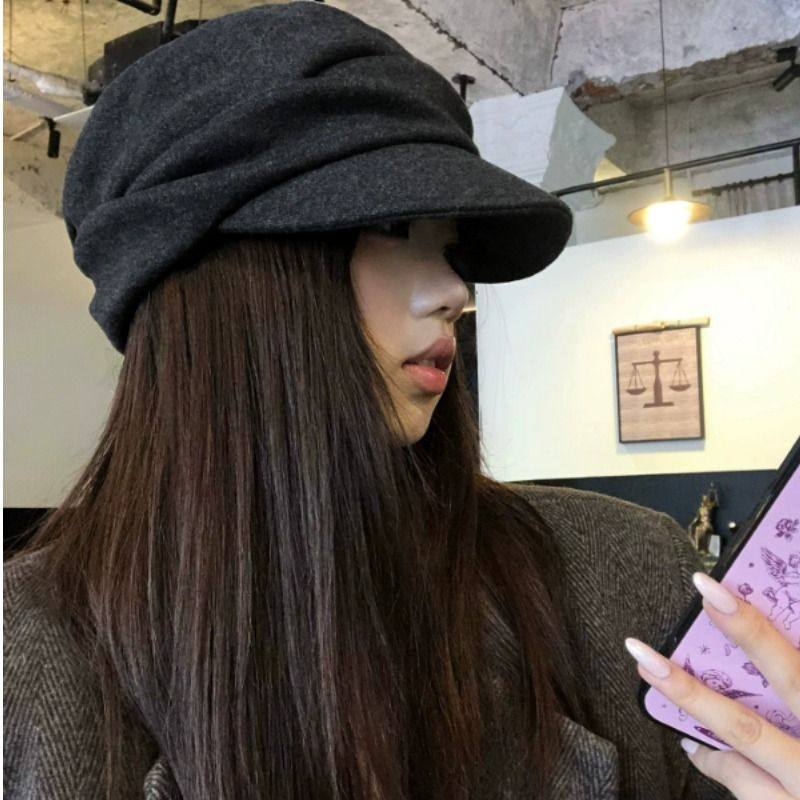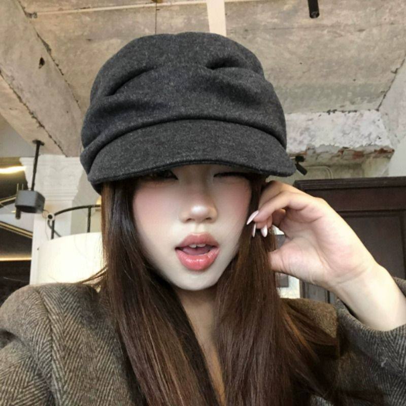 日系山本风黑色褶皱贝雷帽女秋冬2025新款复古鸭舌报童帽子画家帽