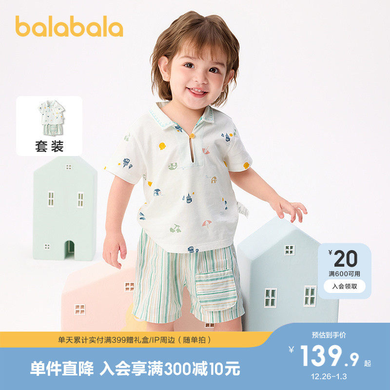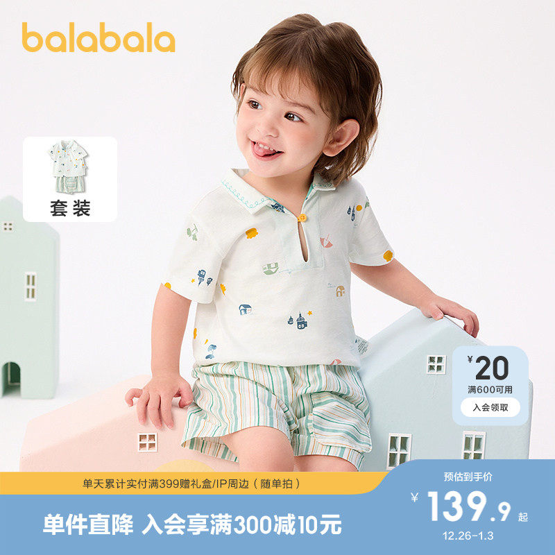 巴拉巴拉童装男童短袖套装婴儿夏装2025新款两件套时尚潮百搭洋气