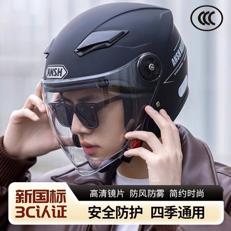 新国标3c认证电动车头盔电瓶摩托车安全帽夏季半盔四季通用镜片