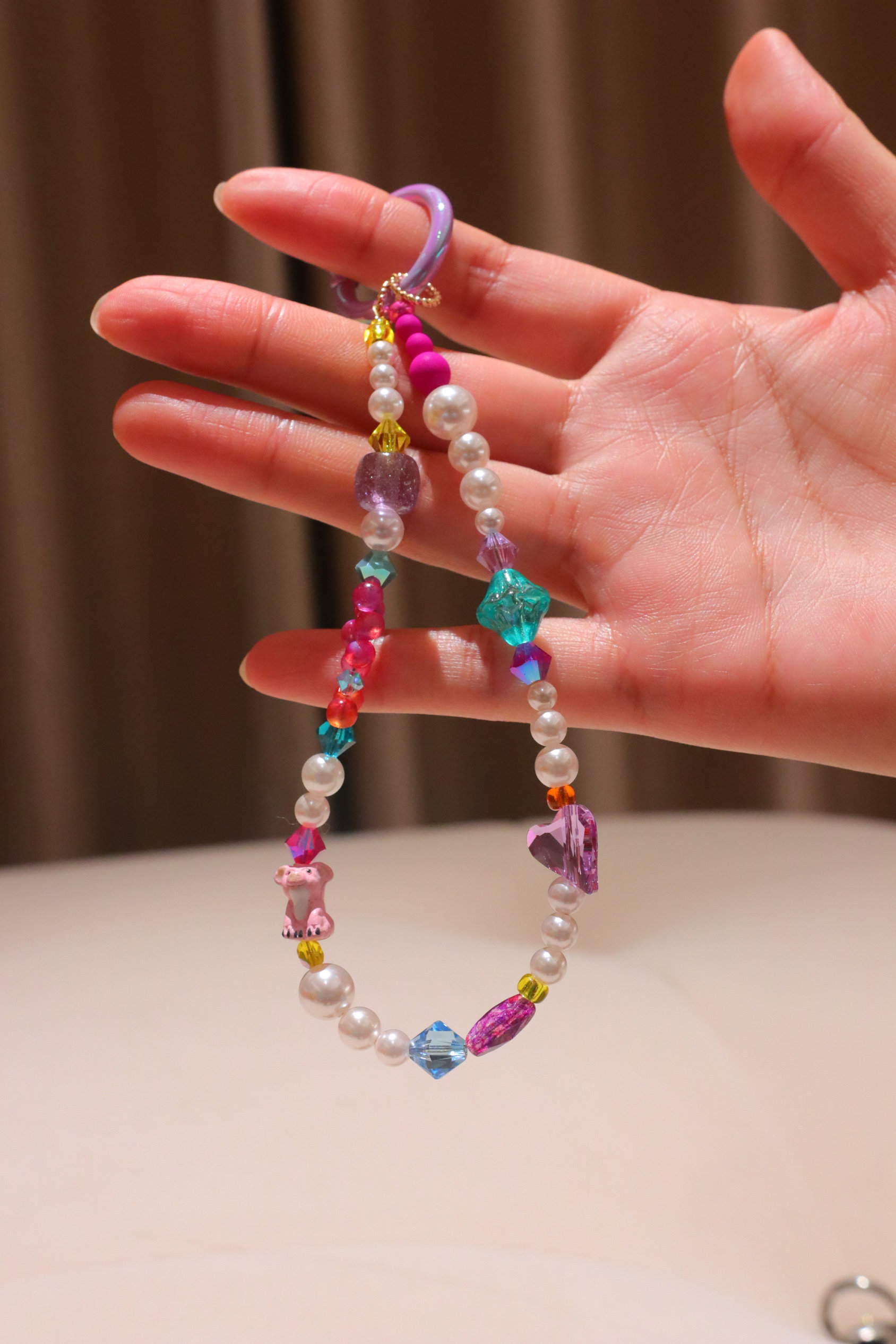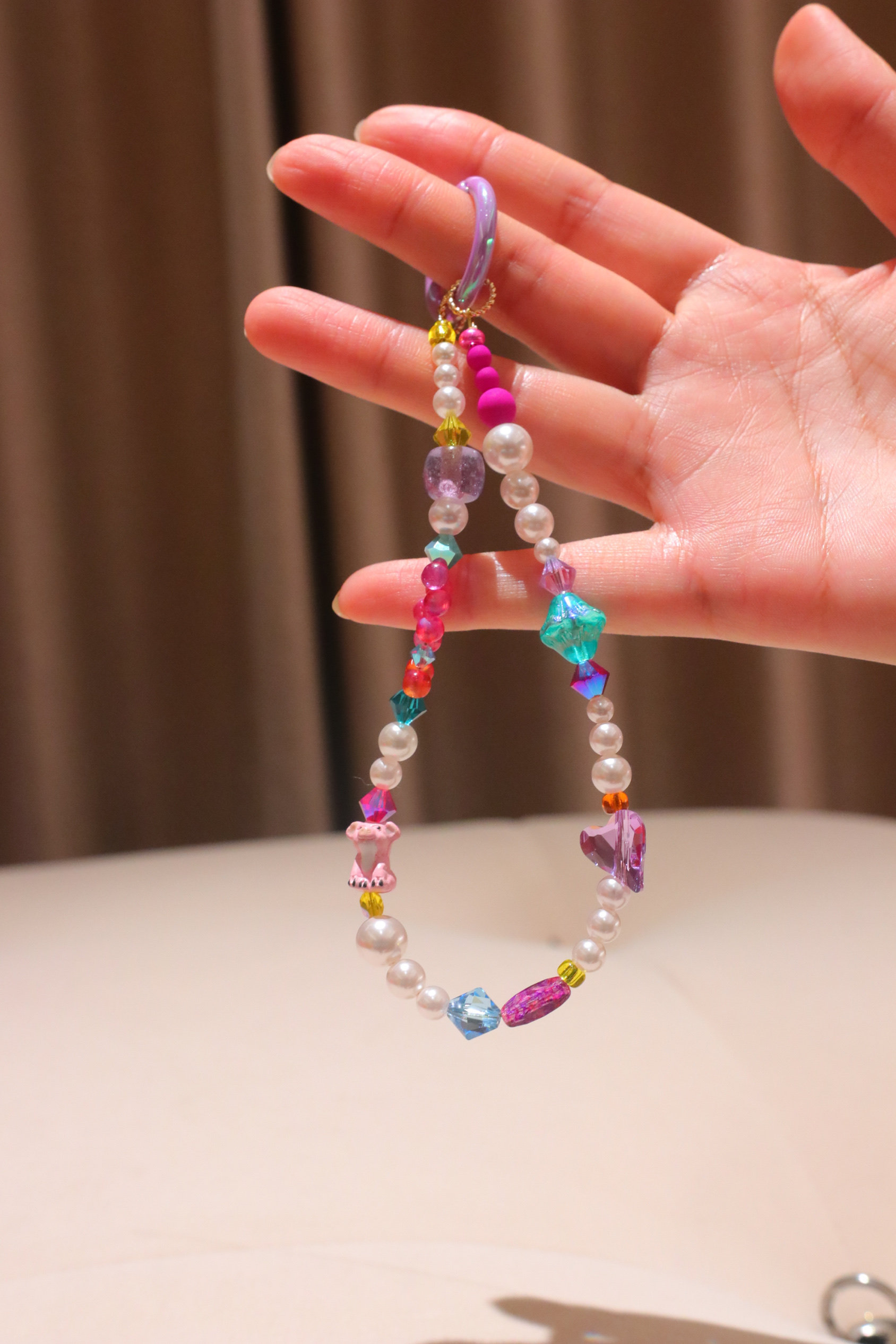 童趣系列原创手作时尚减龄施华洛水晶珍珠手机链可爱挂饰饰品精致