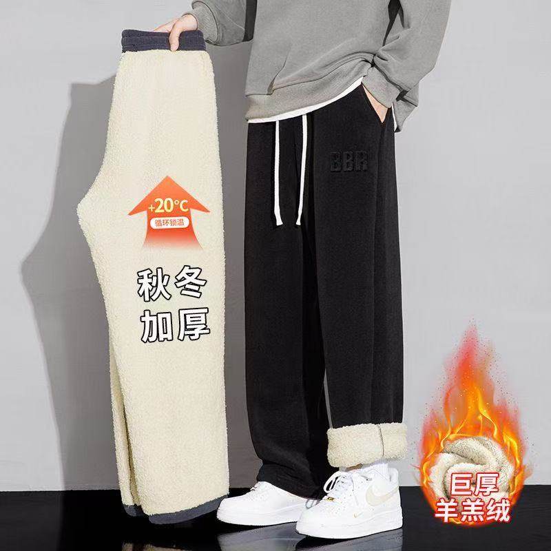 羊羔绒裤子男士秋冬季加绒加厚2025新款棉裤男生休闲长裤直筒卫裤