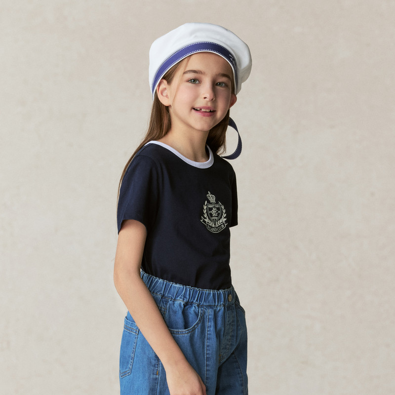 【冰藻泥凉感】eland kids衣恋童装女童T恤2025年夏新品短袖圆领