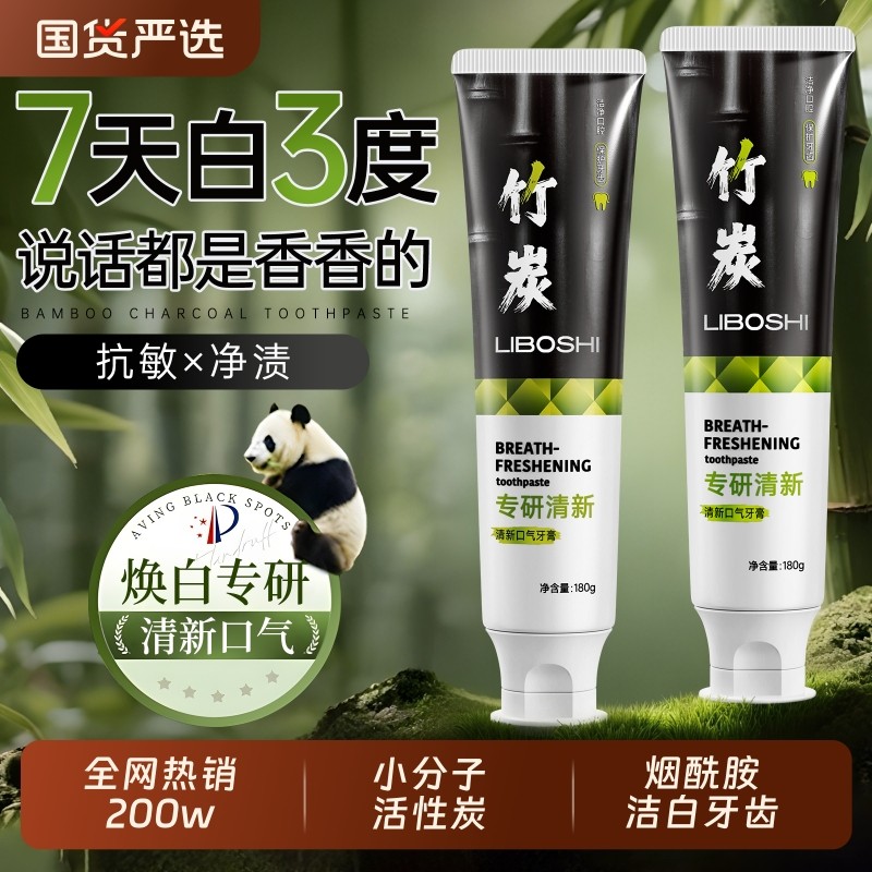 活性炭美白牙膏溶解酶去黄口臭成人速效洗白锁白防蛀清新口气