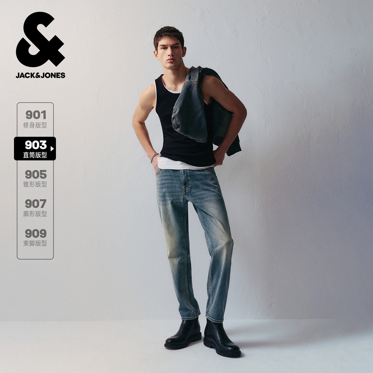 903杰克琼斯男装秋季牛仔裤百搭时尚猫须水洗弹力九分裤子男款