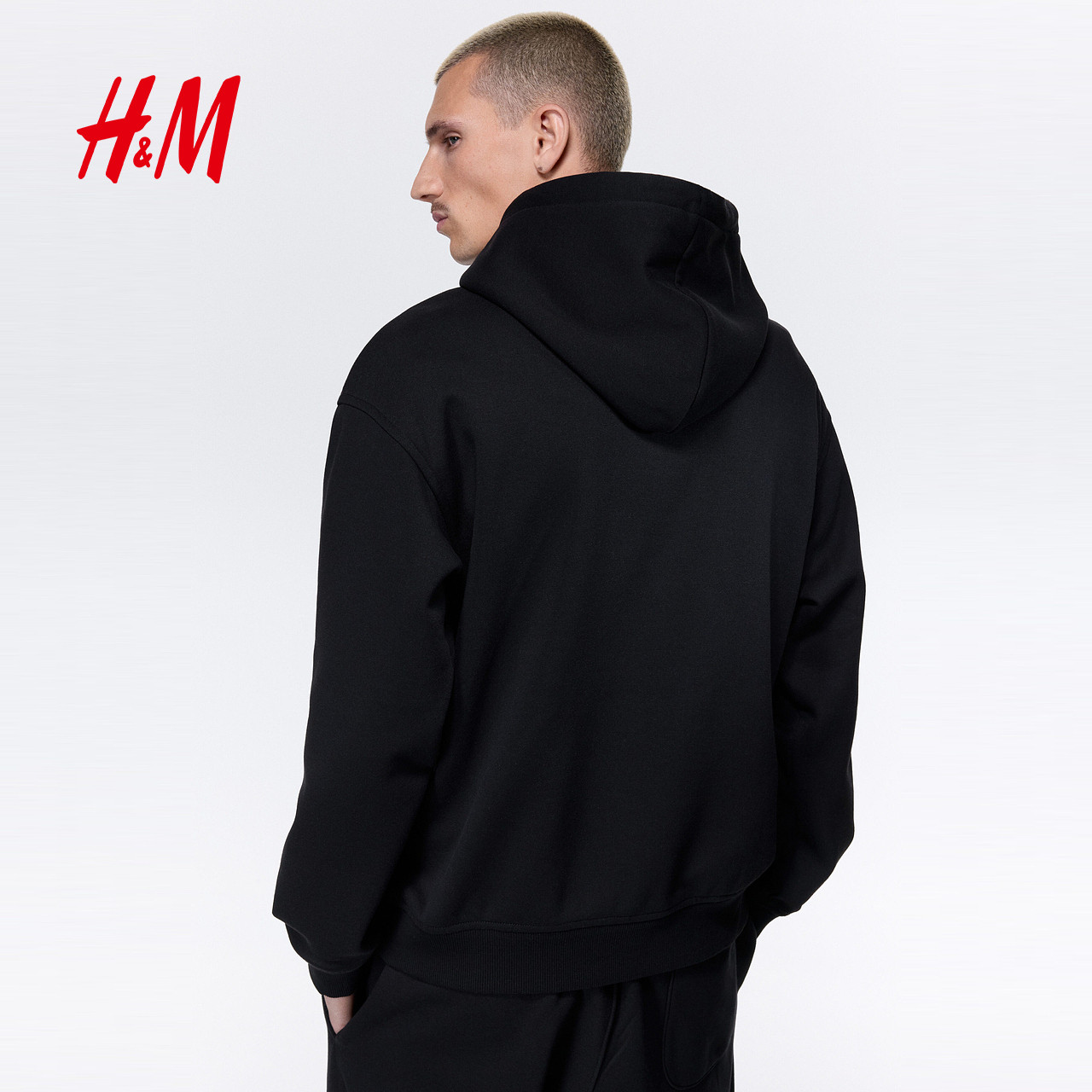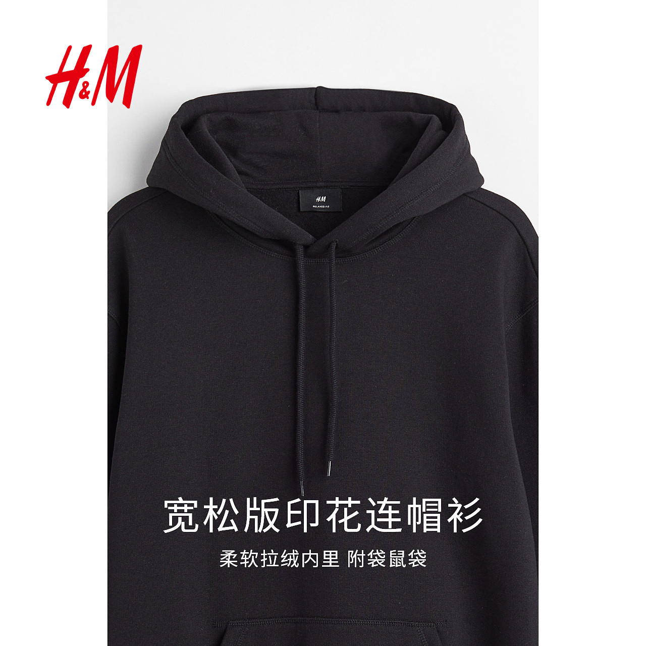 HM男装女装卫衣冬季加绒时尚宽松美式休闲舒适柔软连帽衫0970819