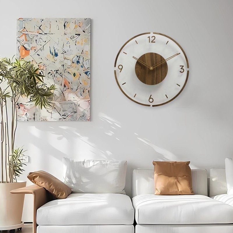 亚克力北欧风钟表挂钟客厅实胡桃木创意静音北欧简约时钟挂表家居