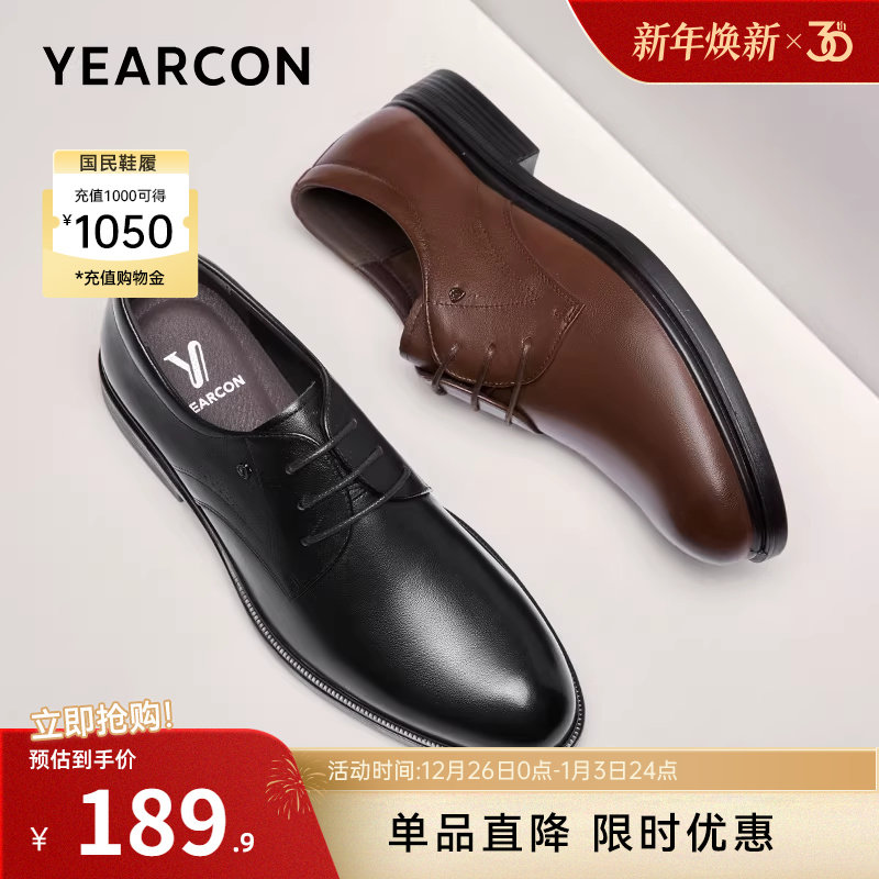 意尔康男鞋2025新款冬秋季真皮正装商务男士皮鞋结婚新郎加绒软底