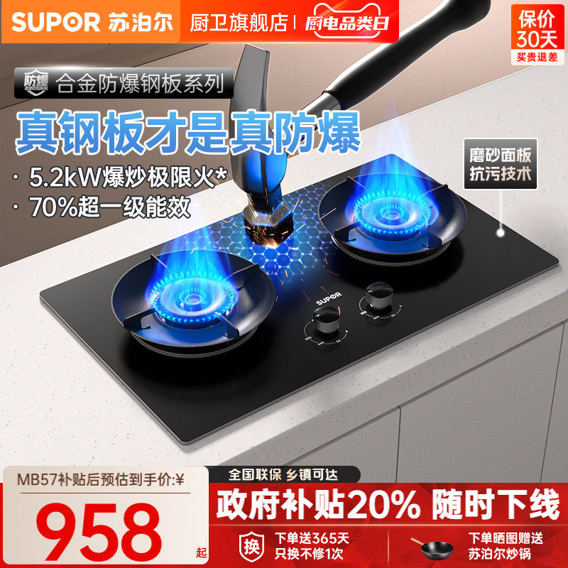 苏泊尔MB57合金防爆燃气灶煤气灶家用双灶天然气燃气灶灶台MF1max