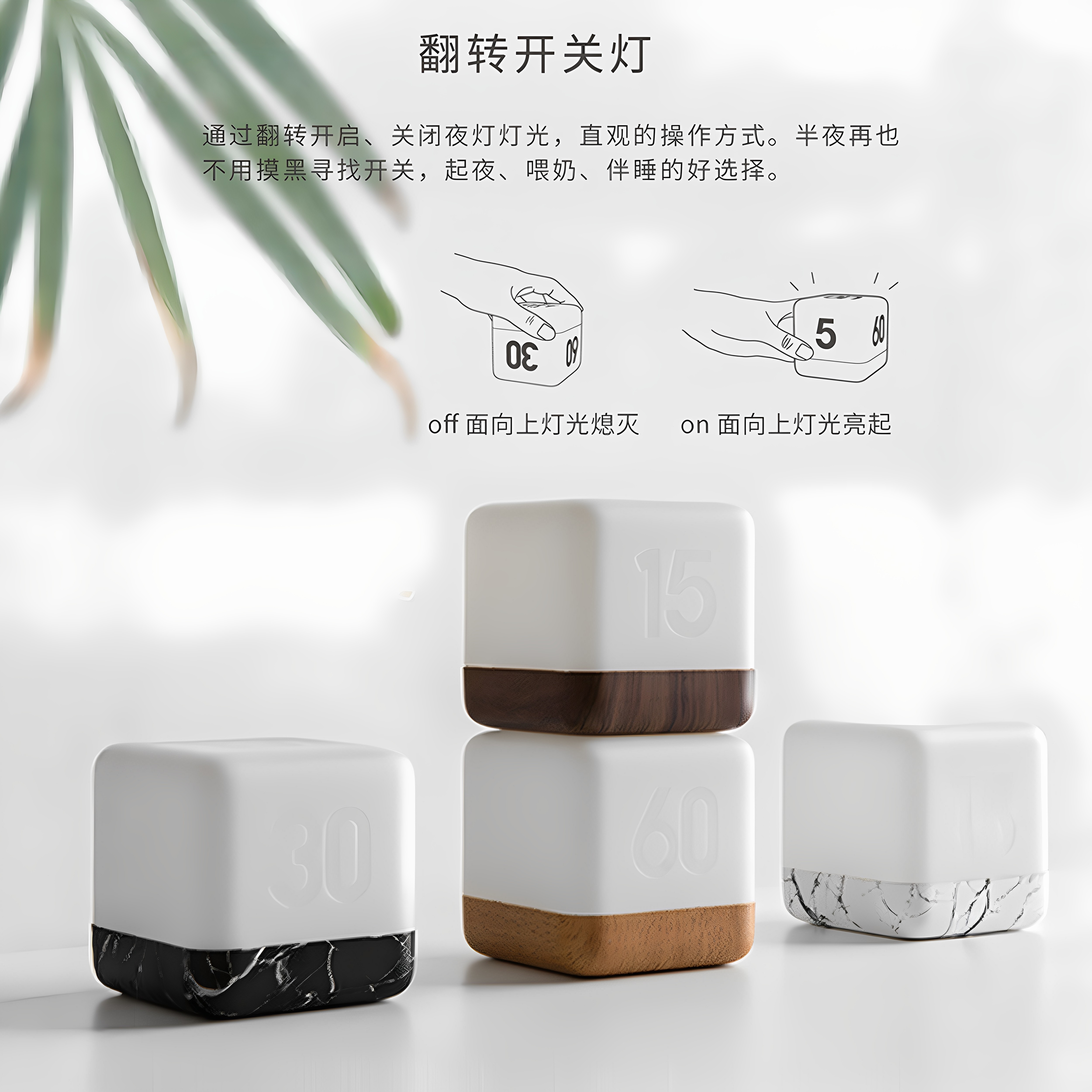 HBK翻转定时关闭小夜灯宿舍卧室床头睡眠创意方块台灯家用小台灯