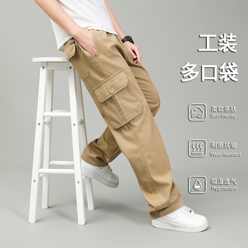 男士纯色休闲裤2025秋冬新款工装长裤宽松直筒裤纯棉耐磨大码男裤