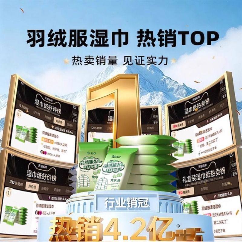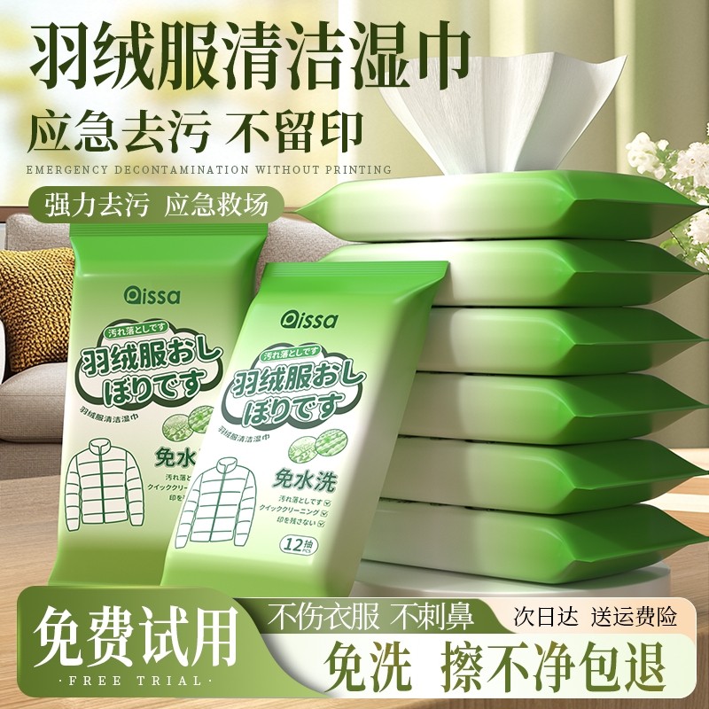羽绒服免洗清洁湿巾强力去污去渍免水擦衣物便携干洗专用独立包装