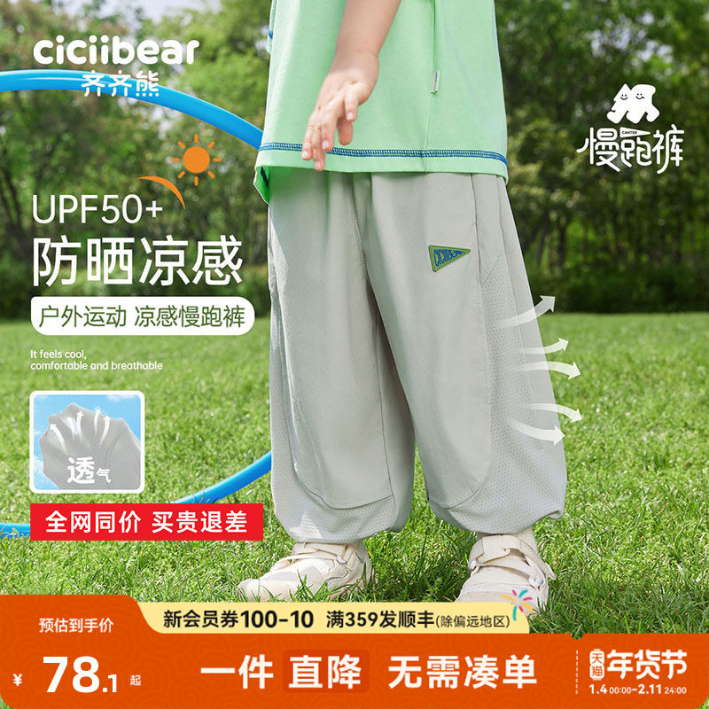 [凉感防晒速干]齐齐熊男童防蚊裤夏季宝宝裤子薄款儿童运动裤女童