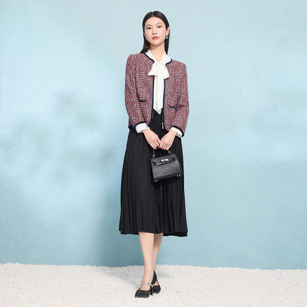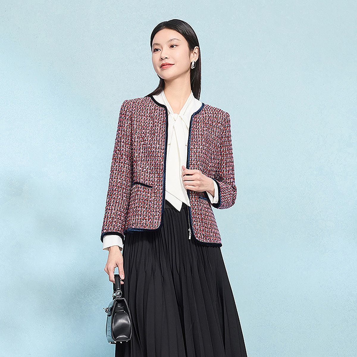 FINITY菲妮迪小香风短外套2026年春季新款简约紫色提花优雅上衣女