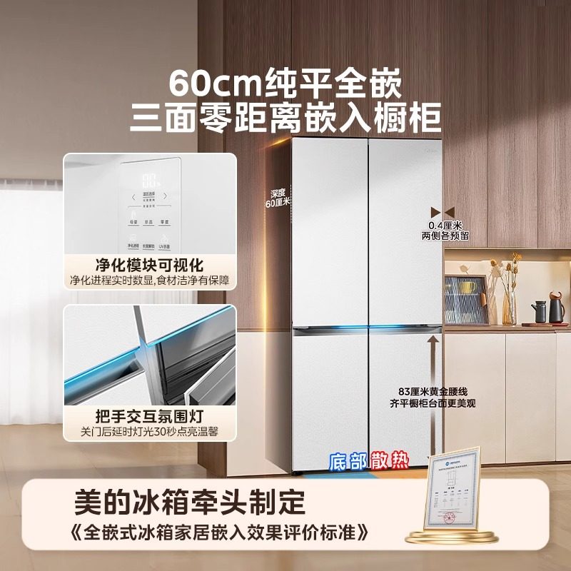 政府补贴美的M60机皇550零嵌入式双系统制冰冰箱家用法式双开四门
