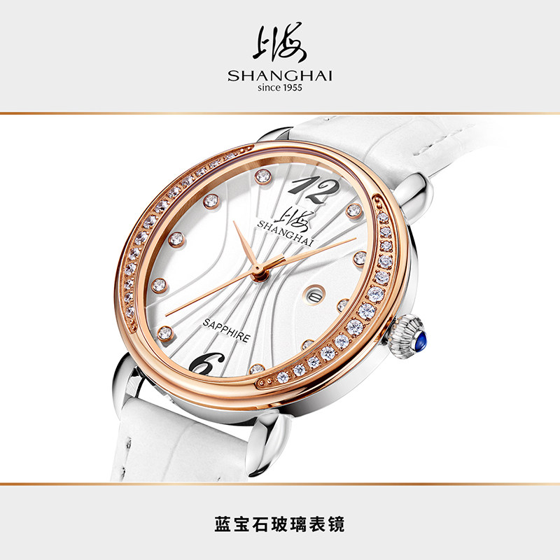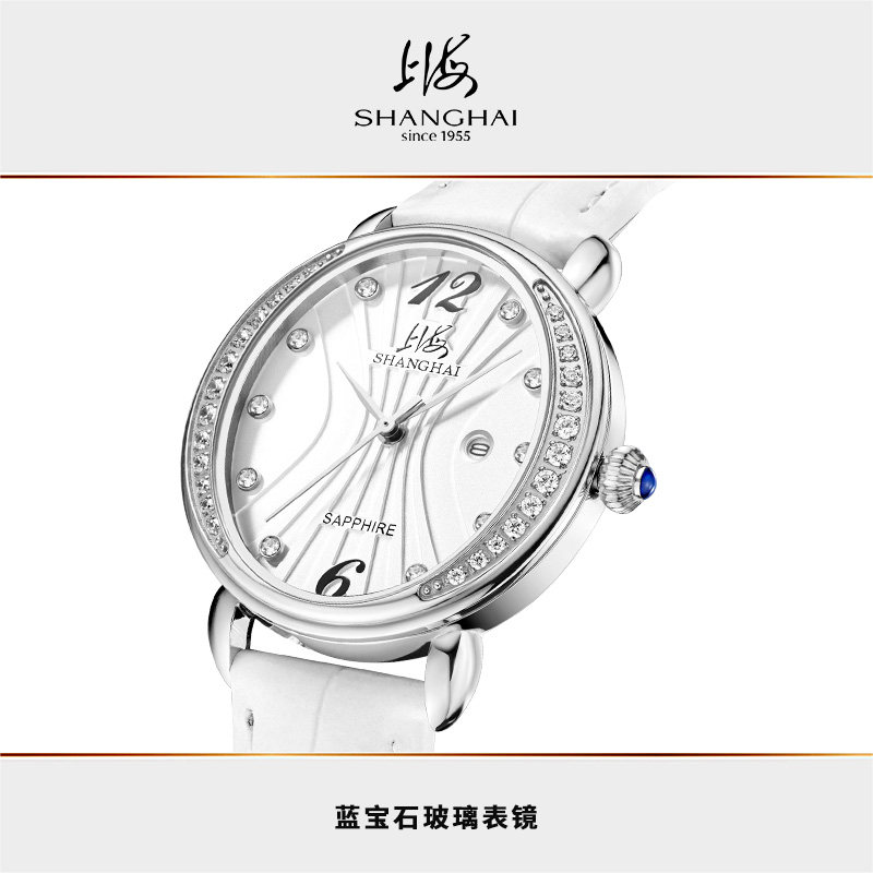 上海手表女款正品优雅简约镶钻日历防水石英表189