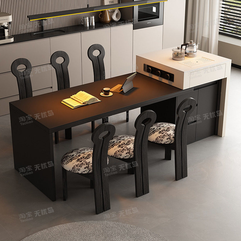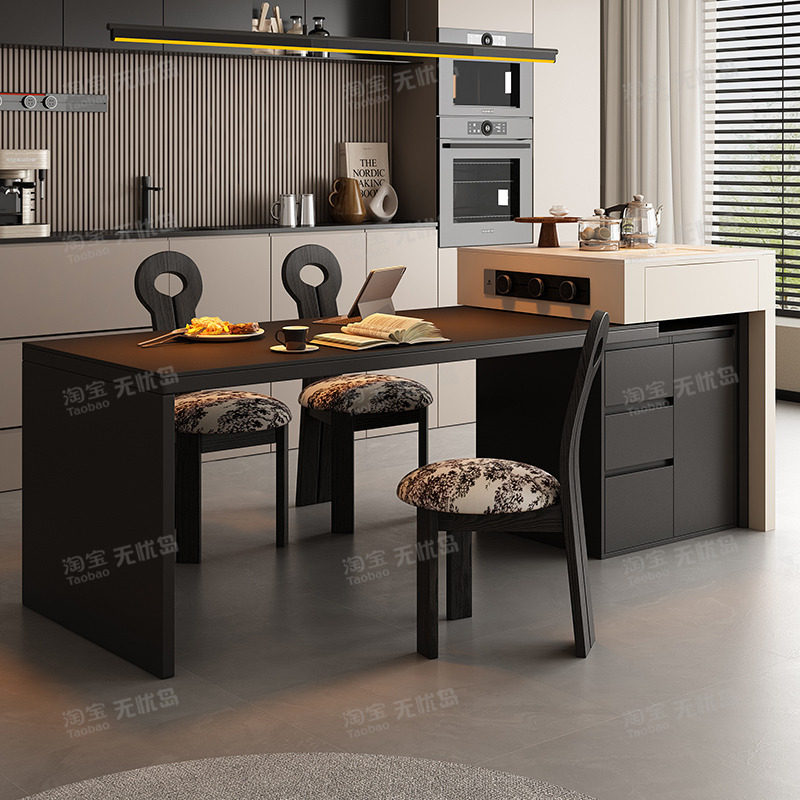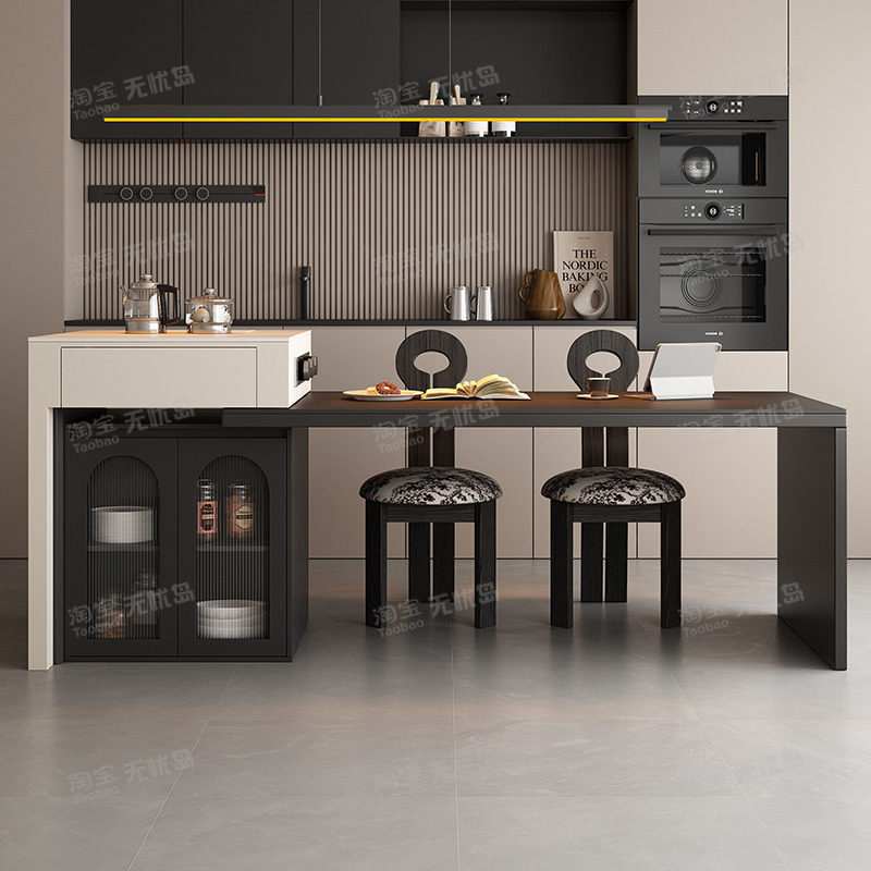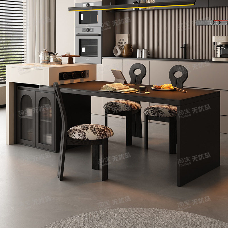无忧岛岛台水槽一体意式极简岩板家用可伸缩实木倒台厨房餐厅岛台