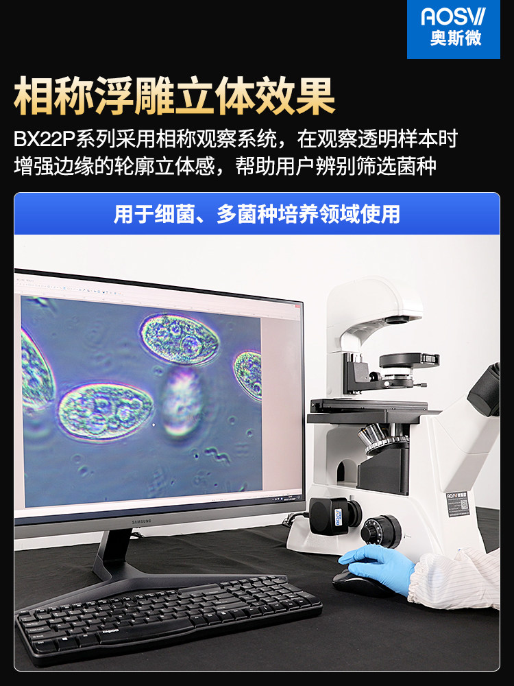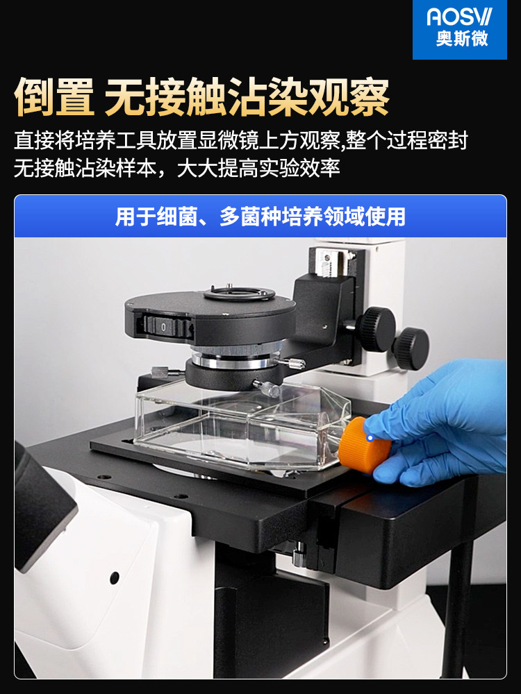 奥斯微科研级倒置相称生物显微镜光学专业款接电脑活体细胞细菌培养 生物研究 畜牧养殖 检验检疫