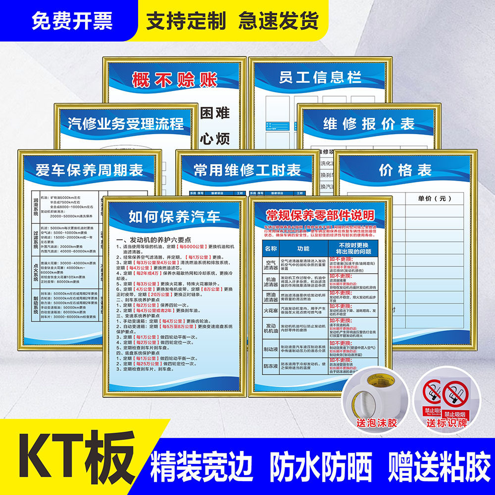 汽修厂管理制度牌汽车修理维修全套4S店钣金工员工信息栏报价表周期表工时表价格表如何保养汽车标语标牌定制