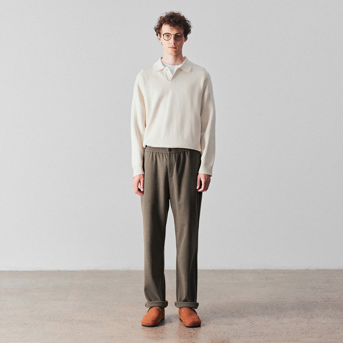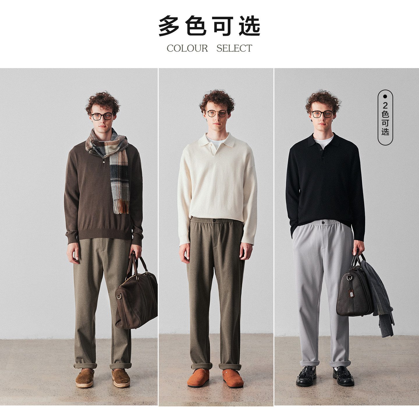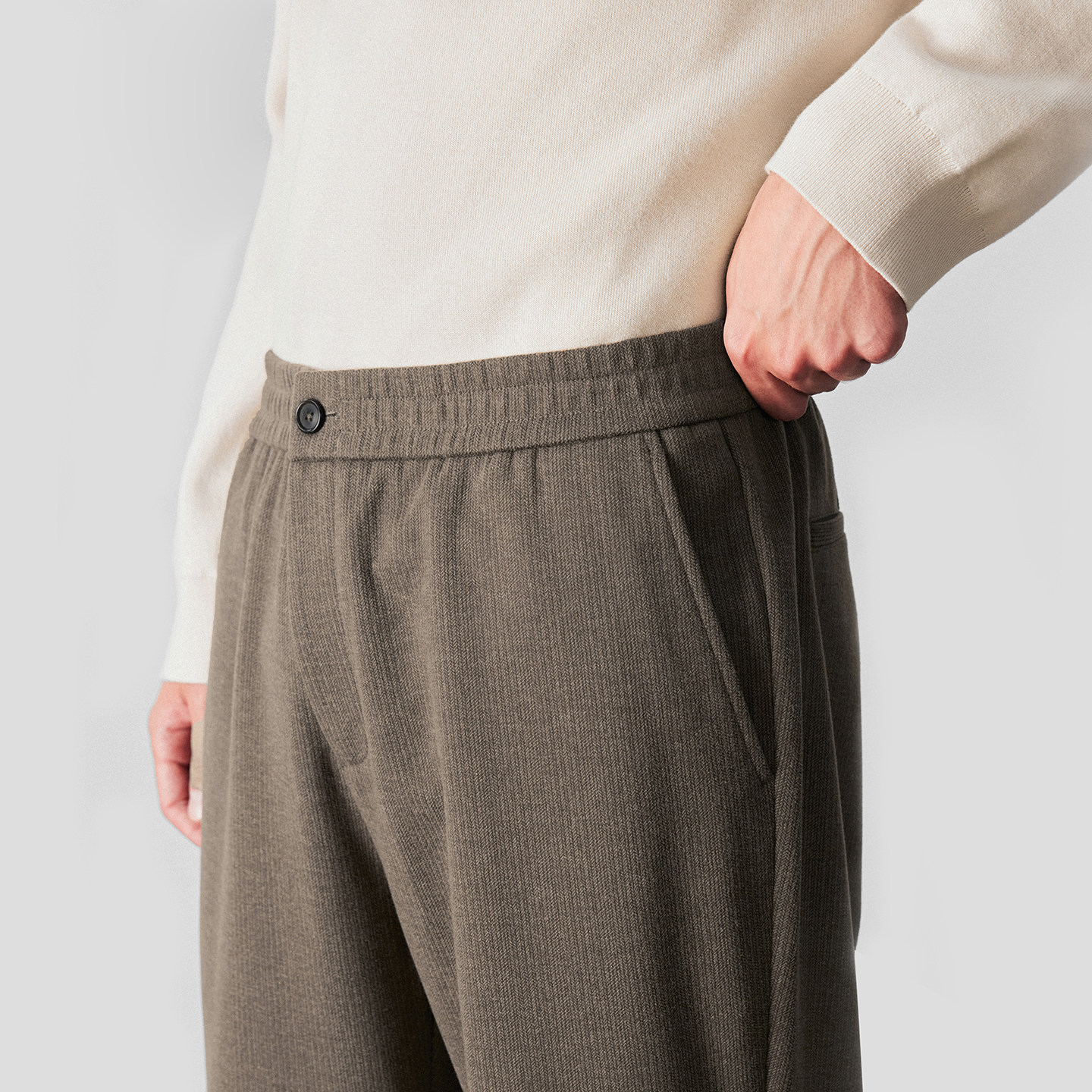 柏品人字纹休闲裤男2025冬新高克重中高腰商务休闲通勤松弛感长裤