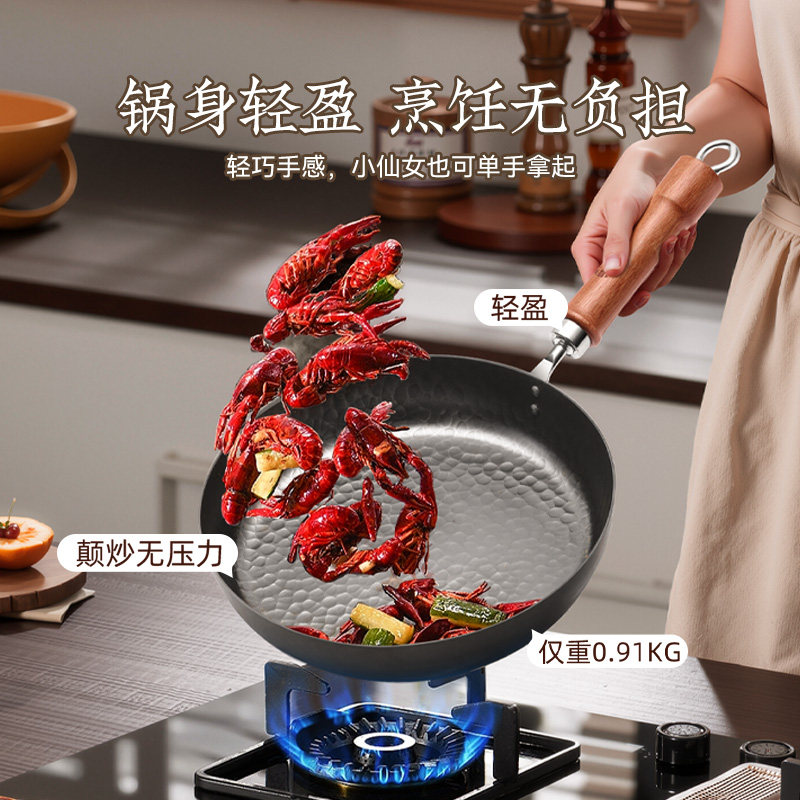 钛红芯控温平底锅不粘锅家用无涂层炒菜煎蛋牛排电磁炉专用深煎锅